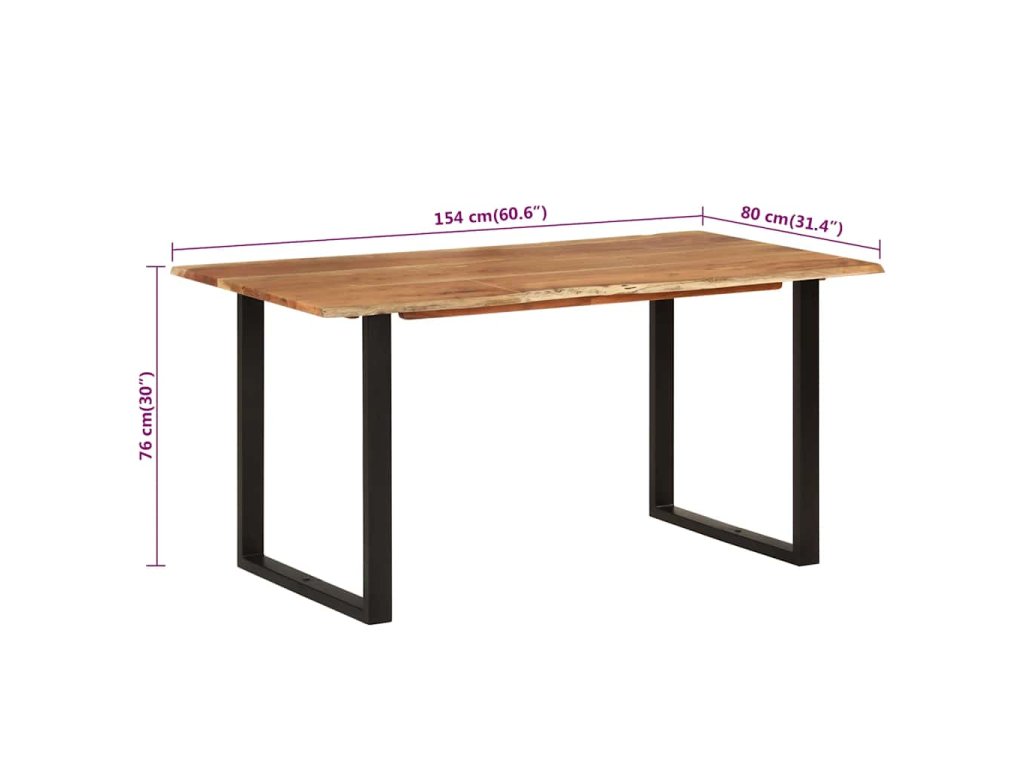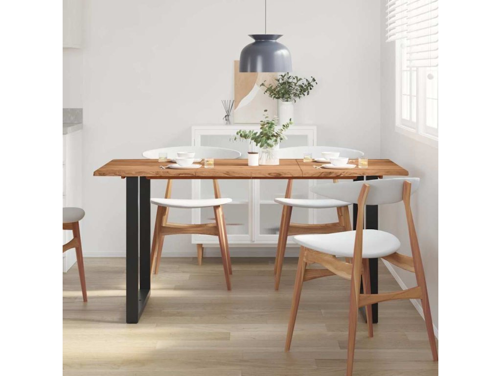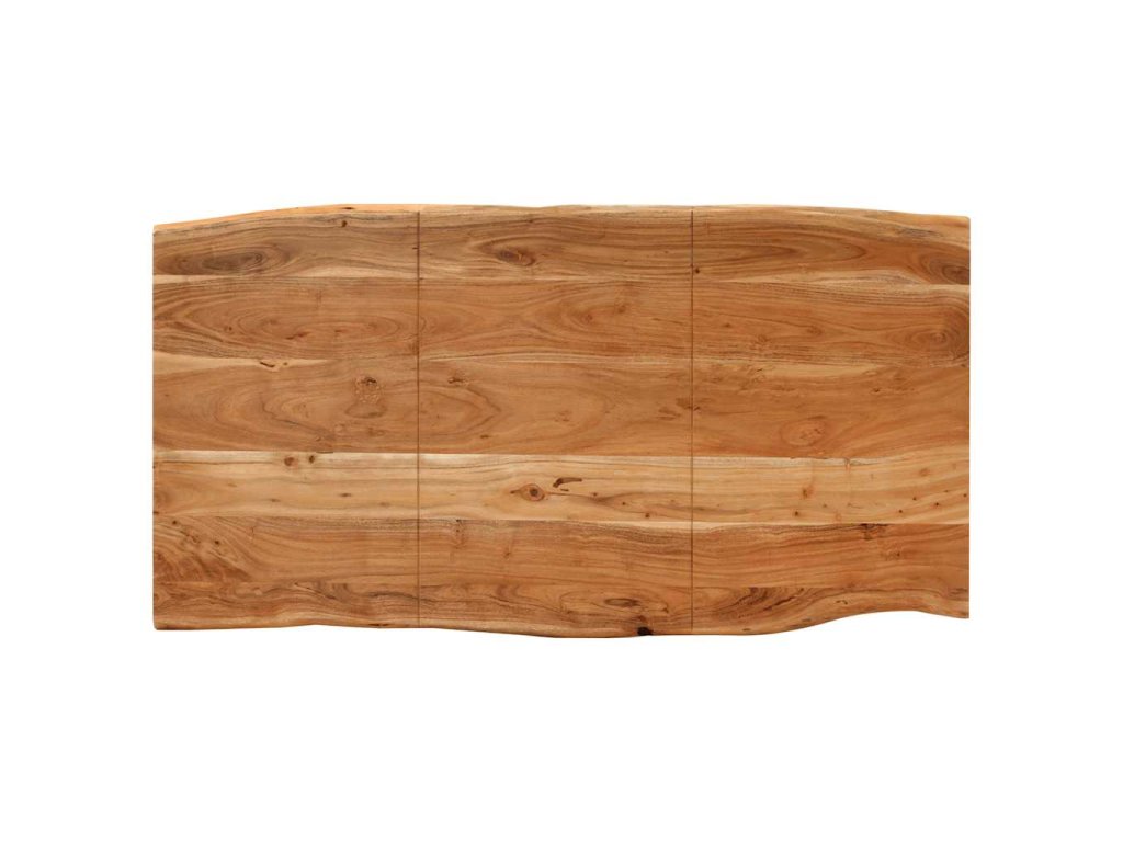 Tento jídelní stůl je vyrobený z masivní akácie, tropického tvrdého dřeva, které je oceňované pro svou pevnost a bohatou kresbu. Živý tvar a okraje stolní desky jsou záměrně opracované tak, aby do vašeho interiéru přinesly původní charakter a přirozený dojem stromu. Každý krok procesu se provádí s největší péčí, ať už jde o leštění, natírání nebo lakování. Ocelové nohy doplňují industriální vzhled a přispívají k robustní konstrukci.