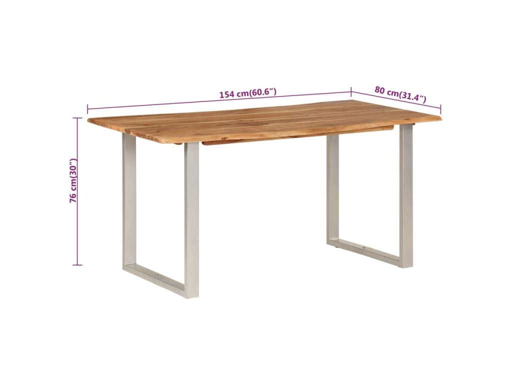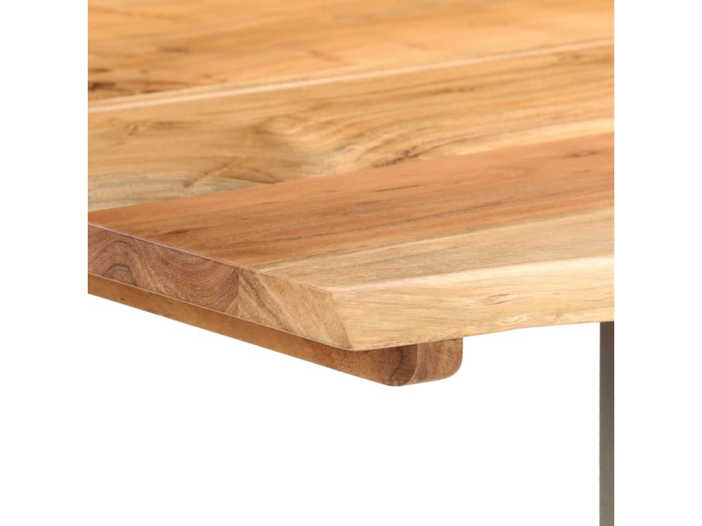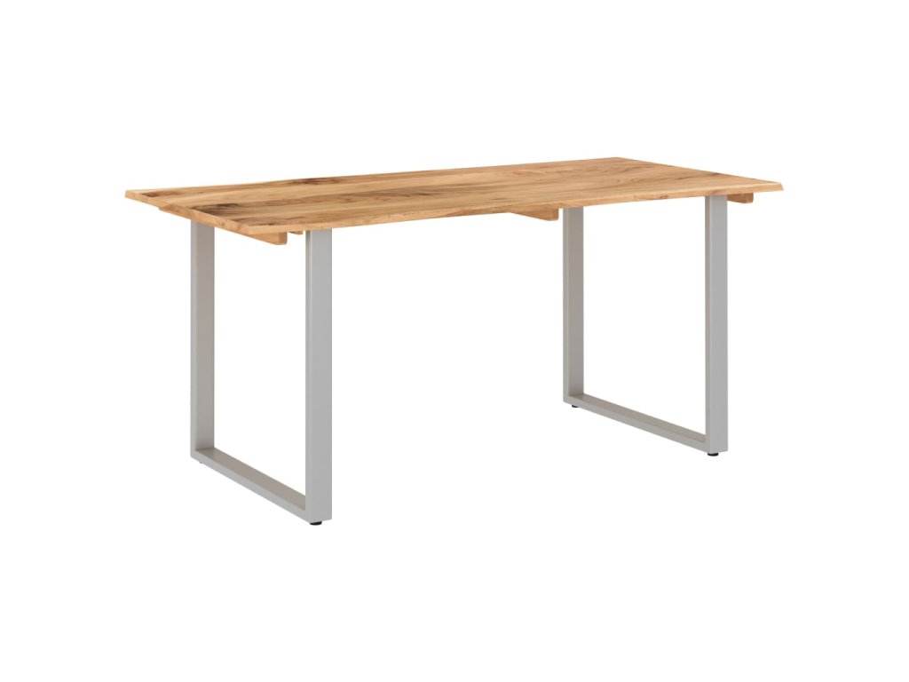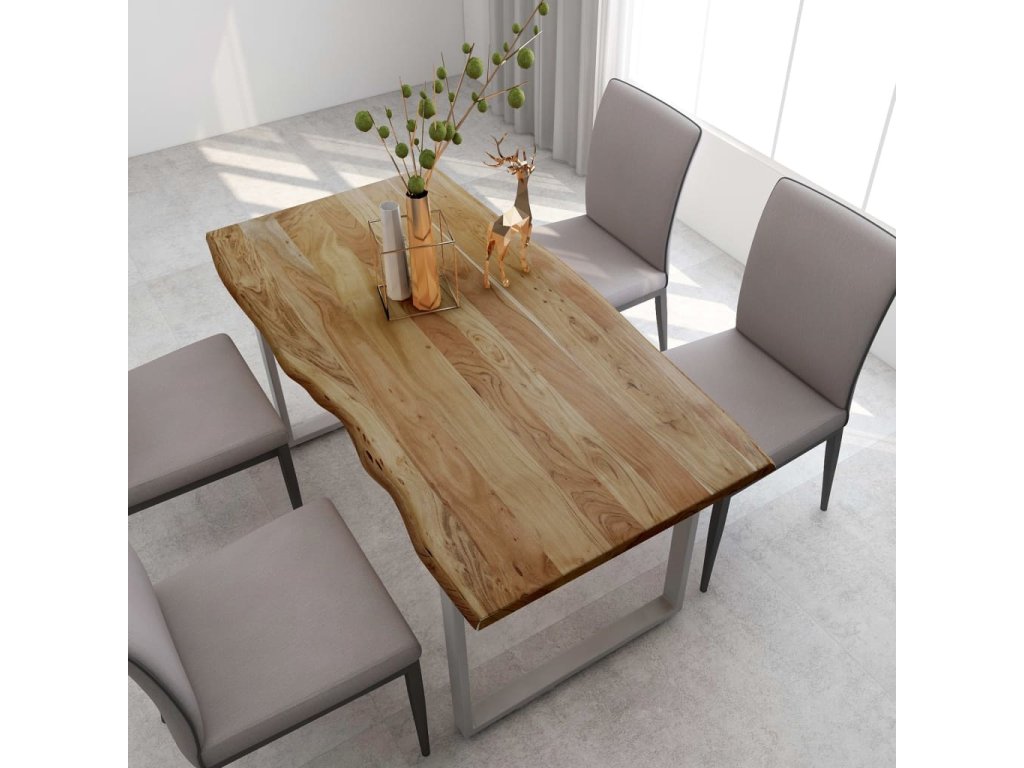 Tento jídelní stůl je vyrobený z masivní akácie, tropického tvrdého dřeva, které je oceňované pro svou pevnost a bohatou kresbu. Živý tvar a okraje stolní desky jsou záměrně opracované tak, aby do vašeho interiéru přinesly původní charakter a přirozený dojem stromu. Každý krok procesu se provádí s největší péčí, ať už jde o leštění, natírání nebo lakování. Ocelové nohy doplňují industriální vzhled a přispívají k robustní konstrukci.