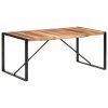 Dřevěný stůl je vyrobený z masivního akáciového dřeva a kaučukovníkového dřeva s sheeshamovou povrchovou úpravou. Masivní akáciové dřevo je tvrdé dřevo s hustou kresbou. Hrubé akáciové dřevo je schopné nést velkou váhu a výborně odolává opotřebení času. Jídelní stůl je celý ručně vyrobený a každý krok výrobního procesu je prováděný s maximální péčí, ať už jde o leštění, natírání nebo lakování. Ocelové nohy doplňují industriální vzhled a přispívají ke stabilní konstrukci. Robustní deska stolu je ideální pro odkládání nápojů a vystavení váz a jiných dekorativních předmětů.