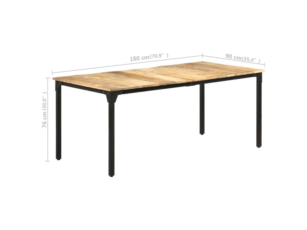 Kuchyňský stůl je ručně vyrobený z hrubého mangovníku, tropického tvrdého dřeva s velkou nosností. Skvěle také odolává opotřebení a působení času, takže je stabilní a dlouho vydrží. Jídelní stůl má práškově lakované železné nohy, takže je vysoce stabilní a odolný. Dřevěná stolní deska je perfektní pro odkládání nápoje, svačinu nebo vystavení dekorací.