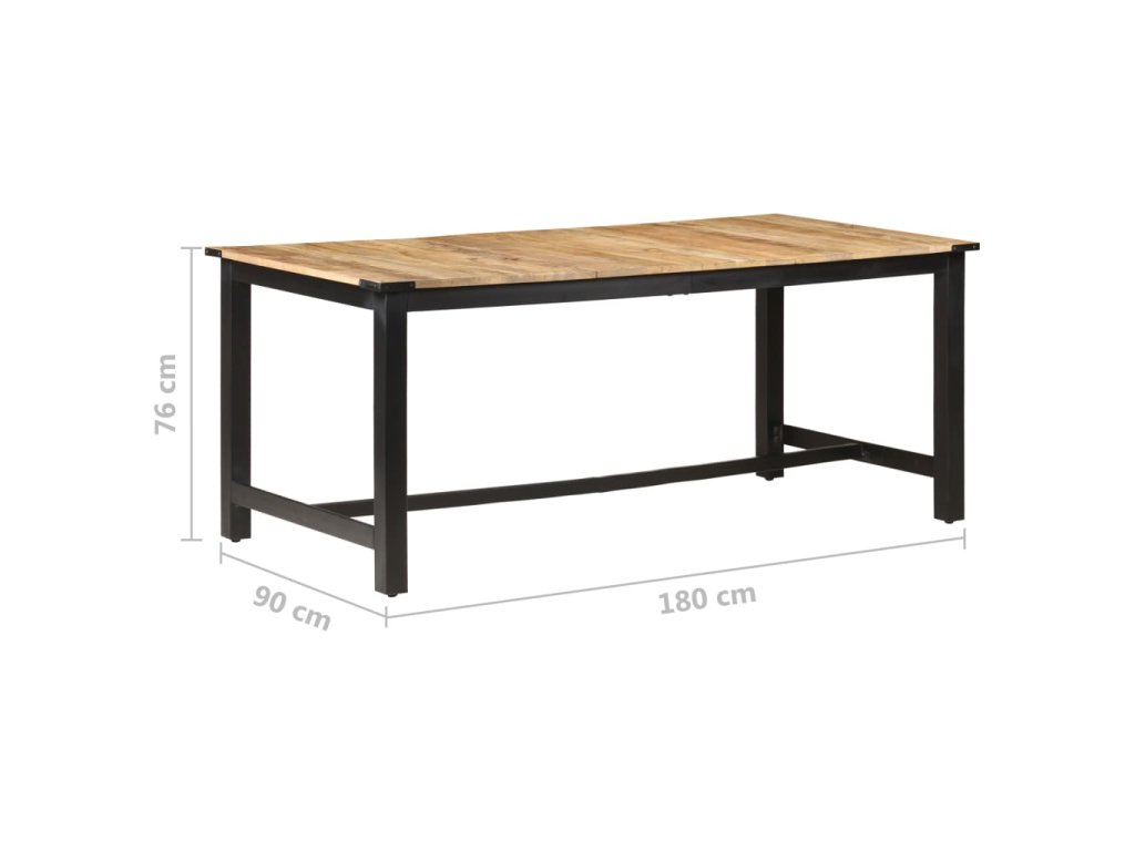 Důležitá poznámka: Hrubé mangovníkové dřevo má přirozenou kresbu, díky které je každý z našich jídelních stolů jedinečný a lehce se odlišuje od všech ostatních. Výběr kusu k dodání je náhodný.