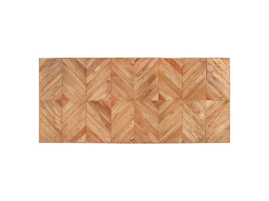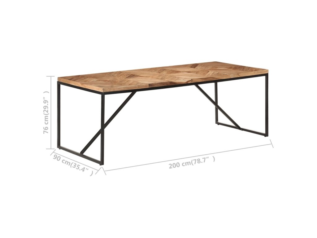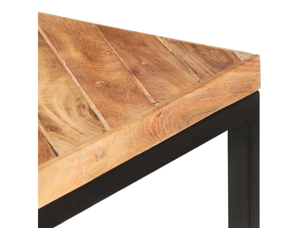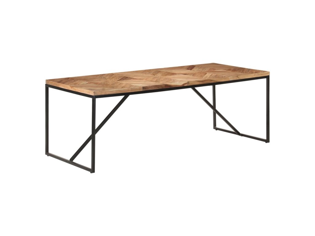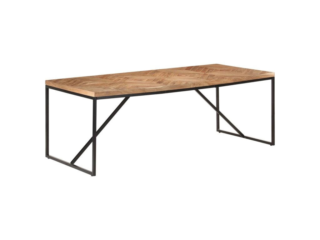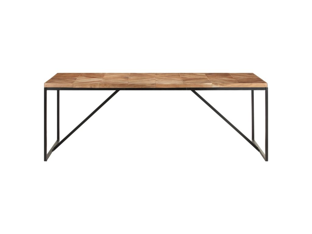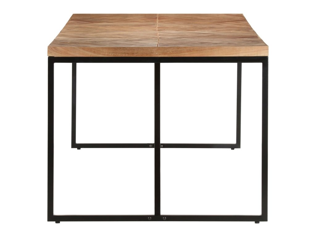 Jídelní stůl je ručně vyrobený z masivního akáciového a mangovníkového dřeva, je velmi stabilní a odolný. Černé práškově lakované ocelové nohy poskytují extra stabilitu. Robustní deska stolu má chevron a mozaikový design, který je velmi působivým doplňkem do vašeho interiéru. Je také perfektní pro servírování nápojů nebo občerstvení.