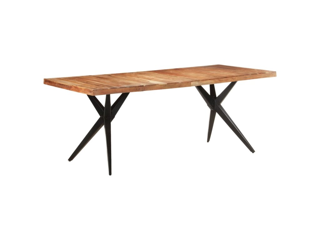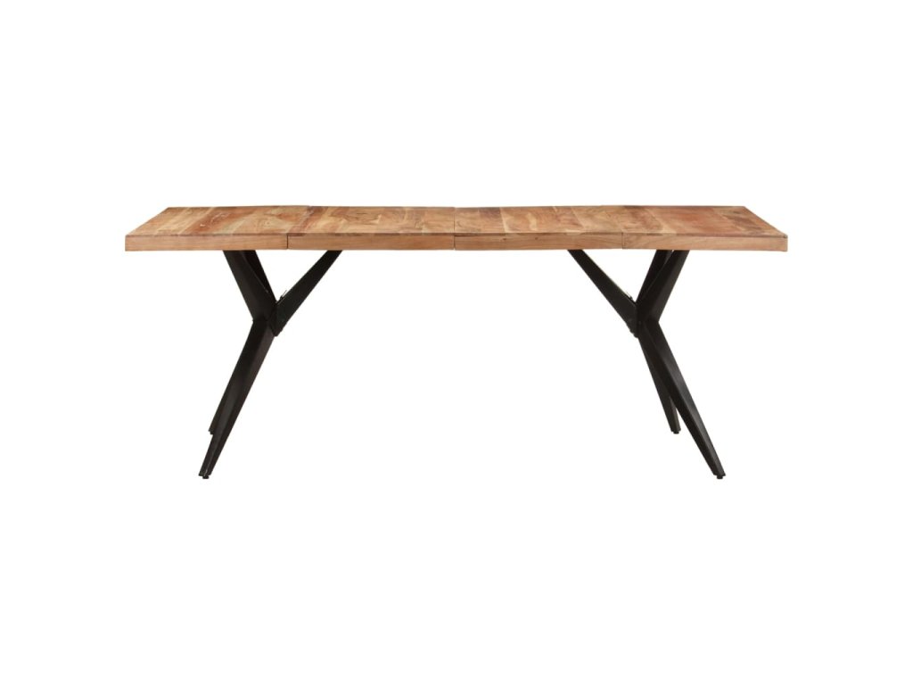Kuchyňský stůl je ručně vyrobený z masivní akácie, tvrdého dřeva s hustou kresbou, takže je stabilní a má dlouhou životnost. Práškově lakované ocelové nohy spolu s rámem s ocelovým křížem mu přidávají na odolnosti. Dřevěná stolní deska je perfektní pro odkládání nápojů, svačiny nebo vystavení dekorací.