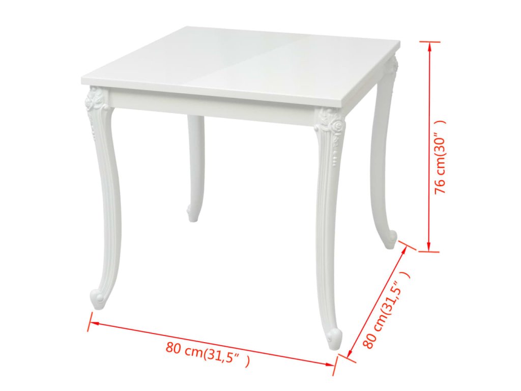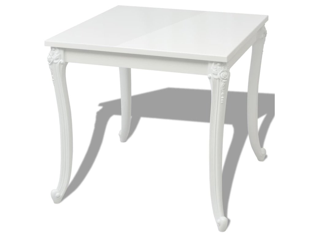 Bílý povrch s vysokým leskem odráží světlo, což přispěje k vašemu celkovému požitku ze stolování. Tento jídelní stůl je vyroben z dřevovláknité desky se střední hustotou (MDF). Má čtyři robustní nohy z lehkého plastu.