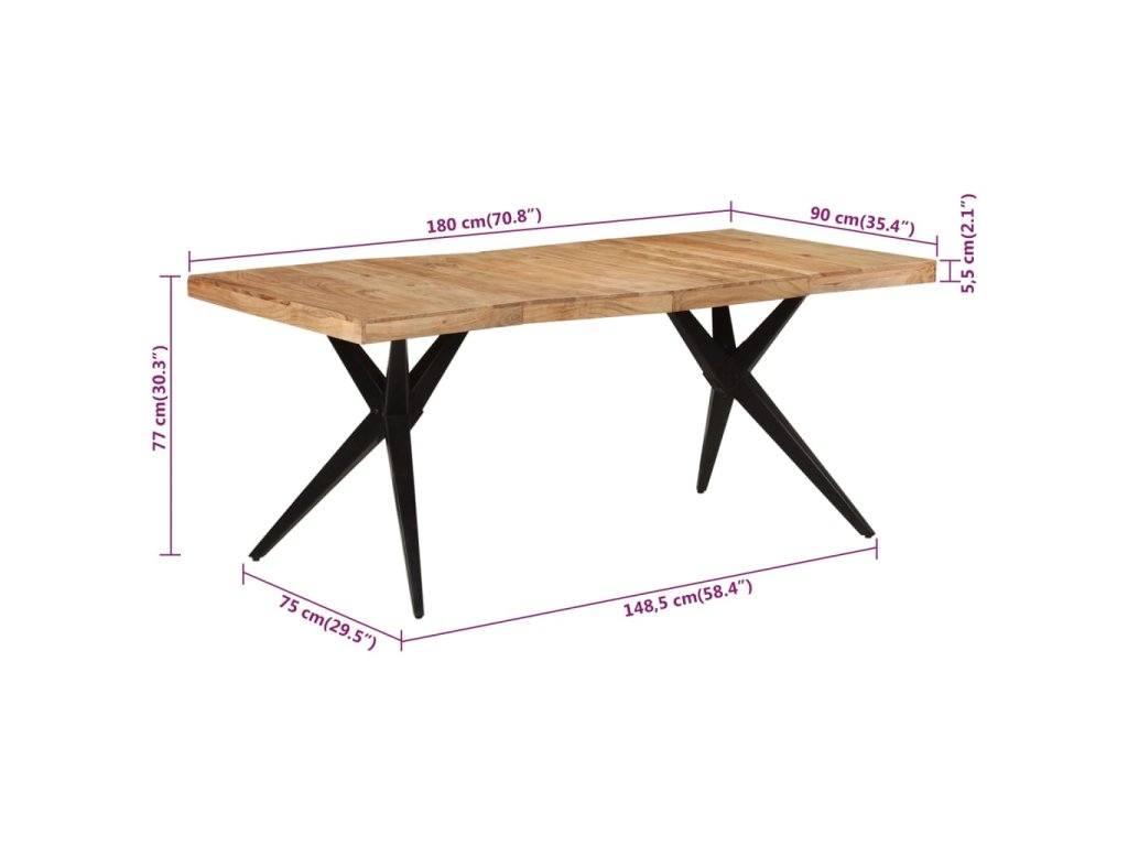 - Masivní akáciové dřevo: Deska jídelního stolu je vyrobená z masivního akáciového dřeva. Masivní akáciové dřevo je nádherný přírodní materiál. Akáciové dřevo je tropické tvrdé dřevo, které má hustou strukturu a je pevné a odolné.