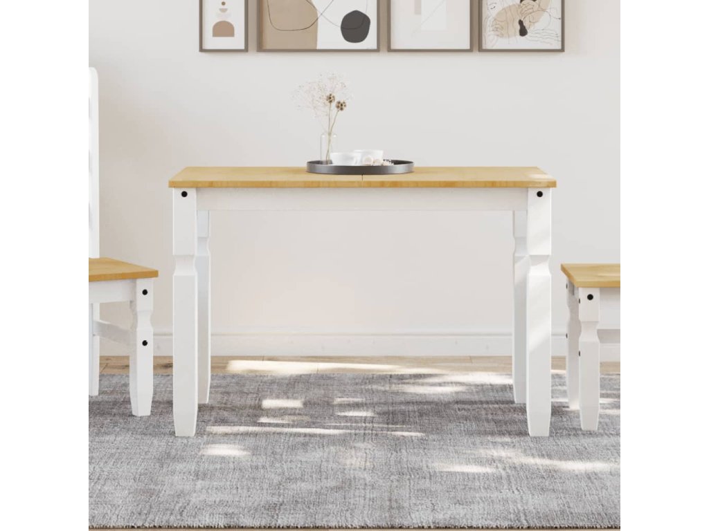 - Masivní borové dřevo: Tento stůl do jídelny je vyrobený z masivní borovice. Masivní borové dřevo je krásný přírodní materiál. Borové dřevo má rovnou kresbu a obsahuje suky, které materiálu dodávají jeho charakteristický, rustikální vzhled.