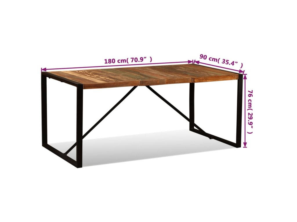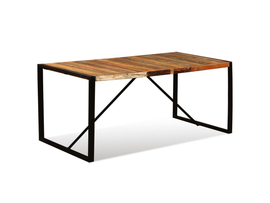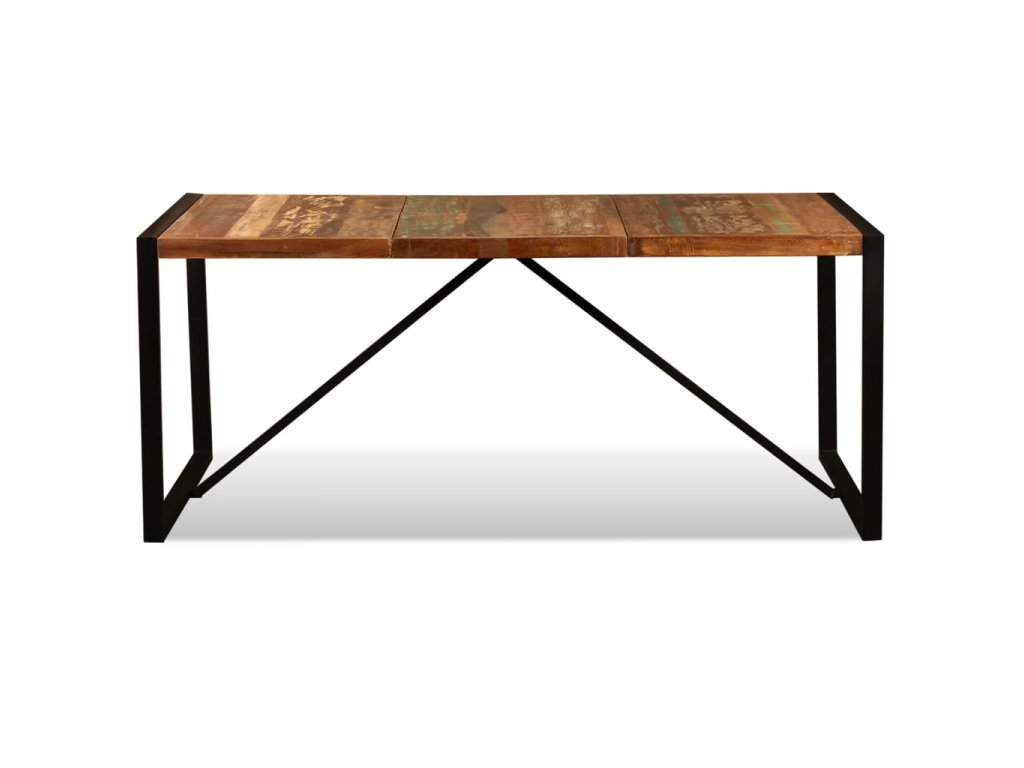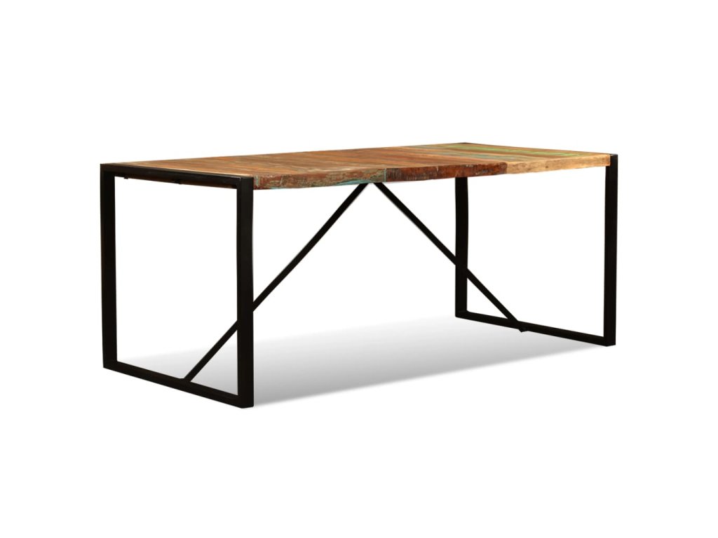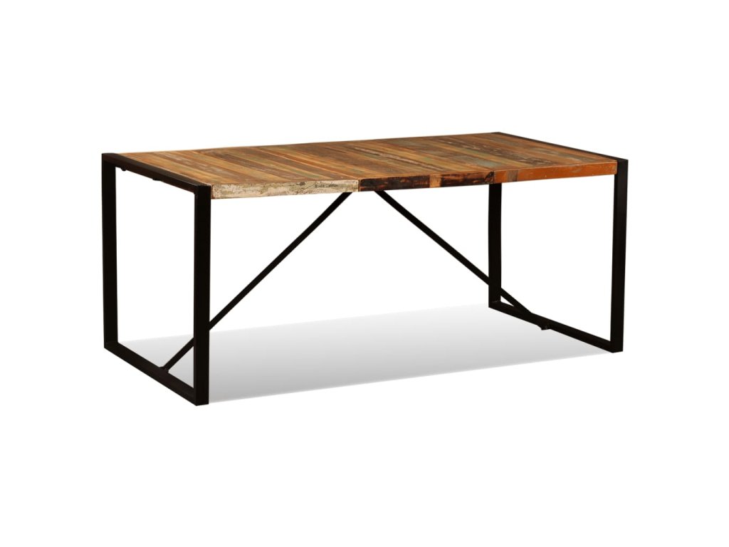 Tento jídelní stůl je vyrobený z masivního recyklovaného dřeva, což znamená, že má vlastnosti různých dřevin, jako je teak, mangovníkové dřevo, akácie atd. Recyklované dřevo je pevné, stabilní, odolné a zároveň krásné. Znaky opotřebení a řemeslného zpracování dodávají každému kusu jedinečnost a jeho ocelové nohy doplňují průmyslový vzhled. Každý krok výroby je prováděn s náležitou péčí, ať už je to leštění nebo lakování. Jeho montáž je také velmi snadná.