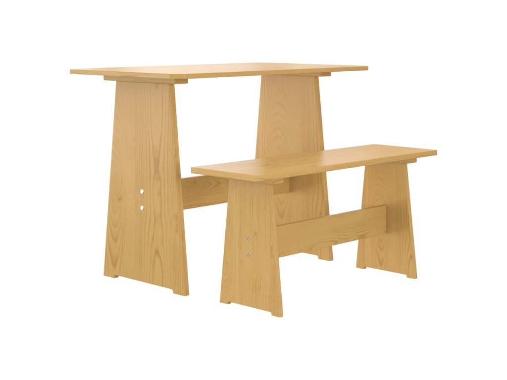 Jídelní stůl s lavicí je vyrobený z masivního borového dřeva a vyniká svou dlouhou životností. Lze ho snadno přemisťovat a přizpůsobit jakémukoli prostředí.