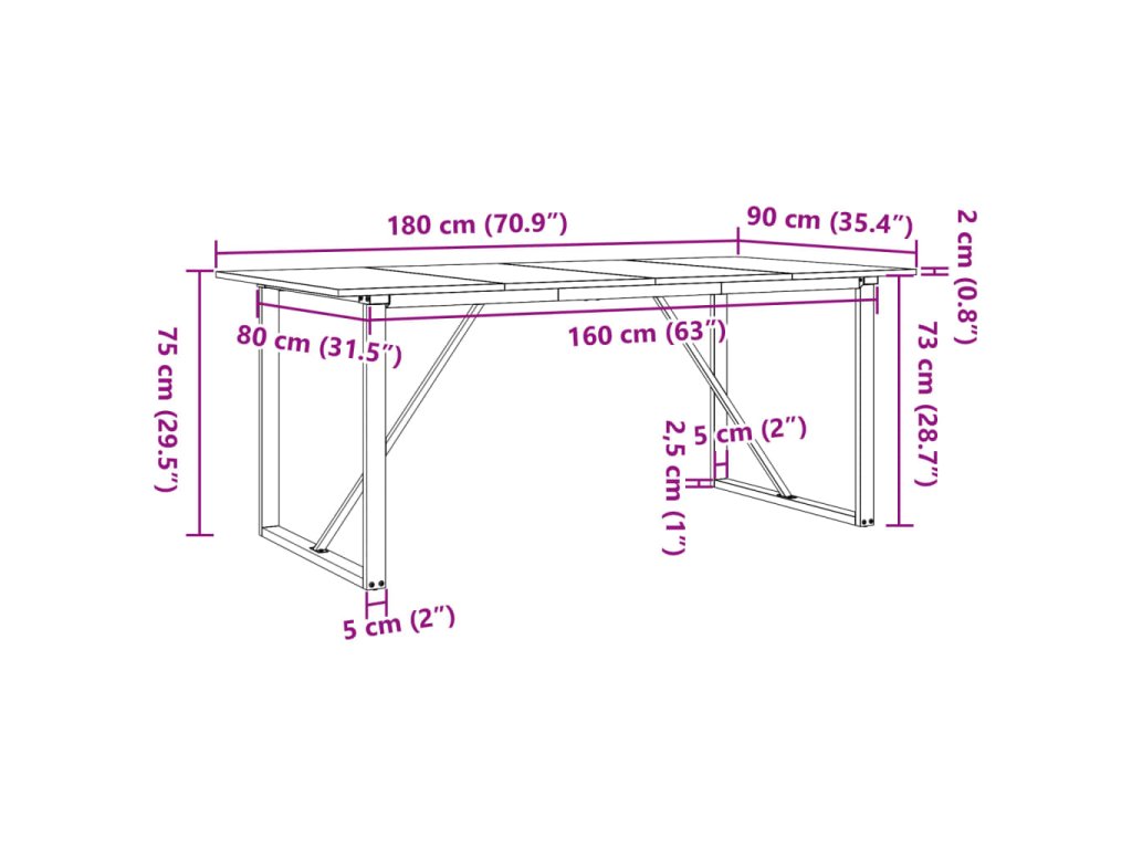- Pevná a stabilní konstrukce: Stůl má konstrukci ve tvaru písmene O, která zajišťuje stabilitu a bezpečnost.