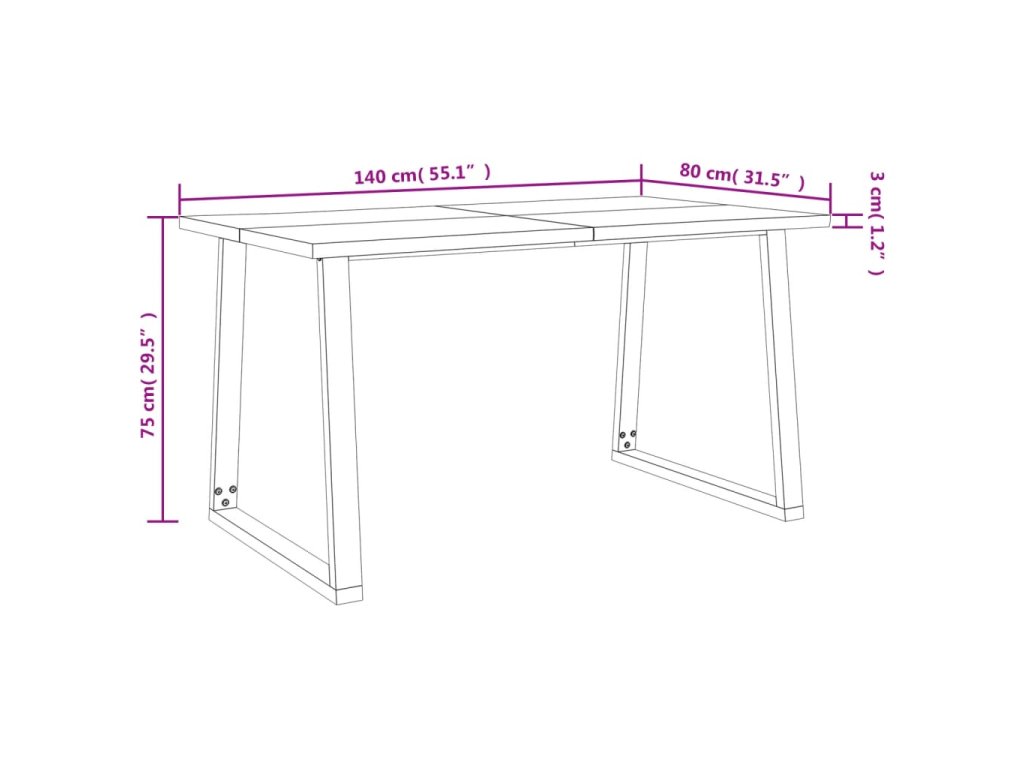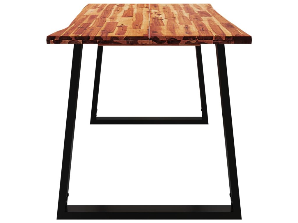 Tento jídelní stůl s deskou z masivního akáciového dřeva a stabilními nohami ve tvaru písmene U je skvělým doplňkem vaší jídelny nebo kuchyně.