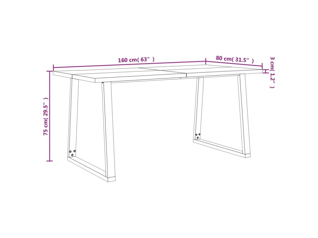 Tento jídelní stůl s deskou z masivního akáciového dřeva a stabilními nohami ve tvaru písmene U je skvělým doplňkem vaší jídelny nebo kuchyně.