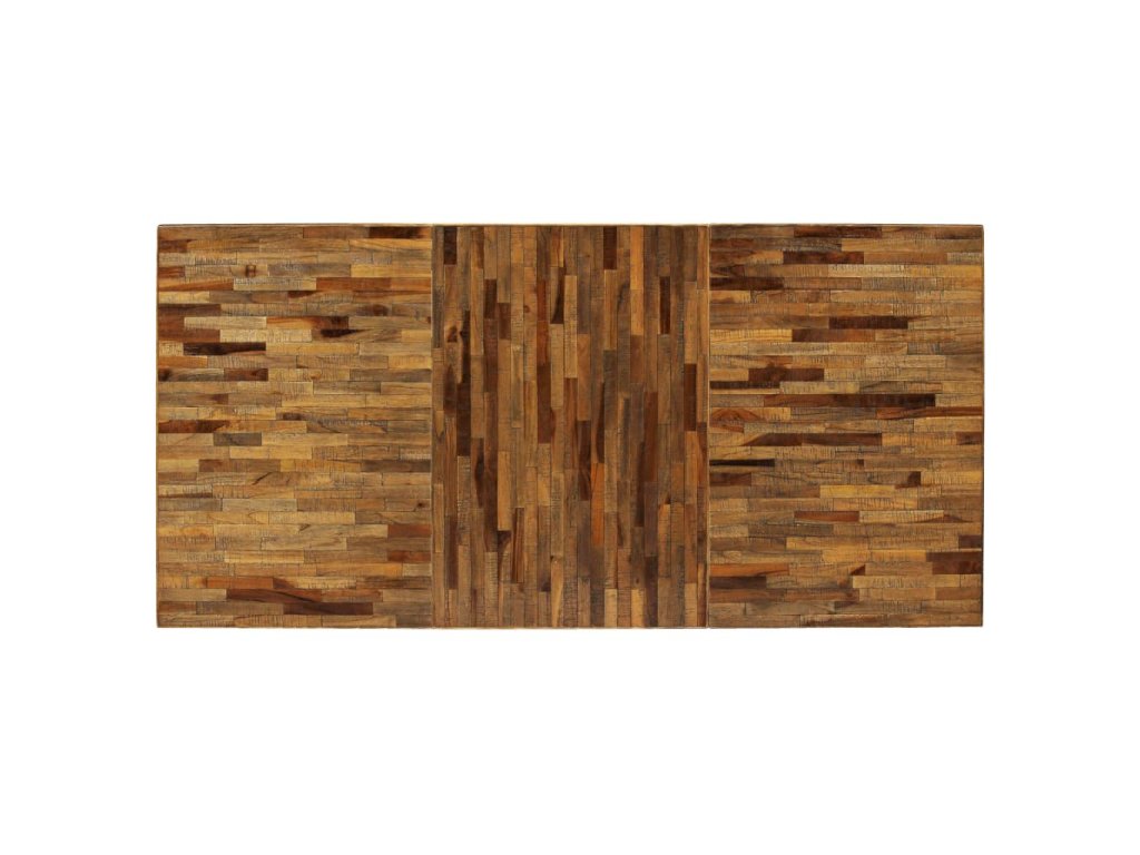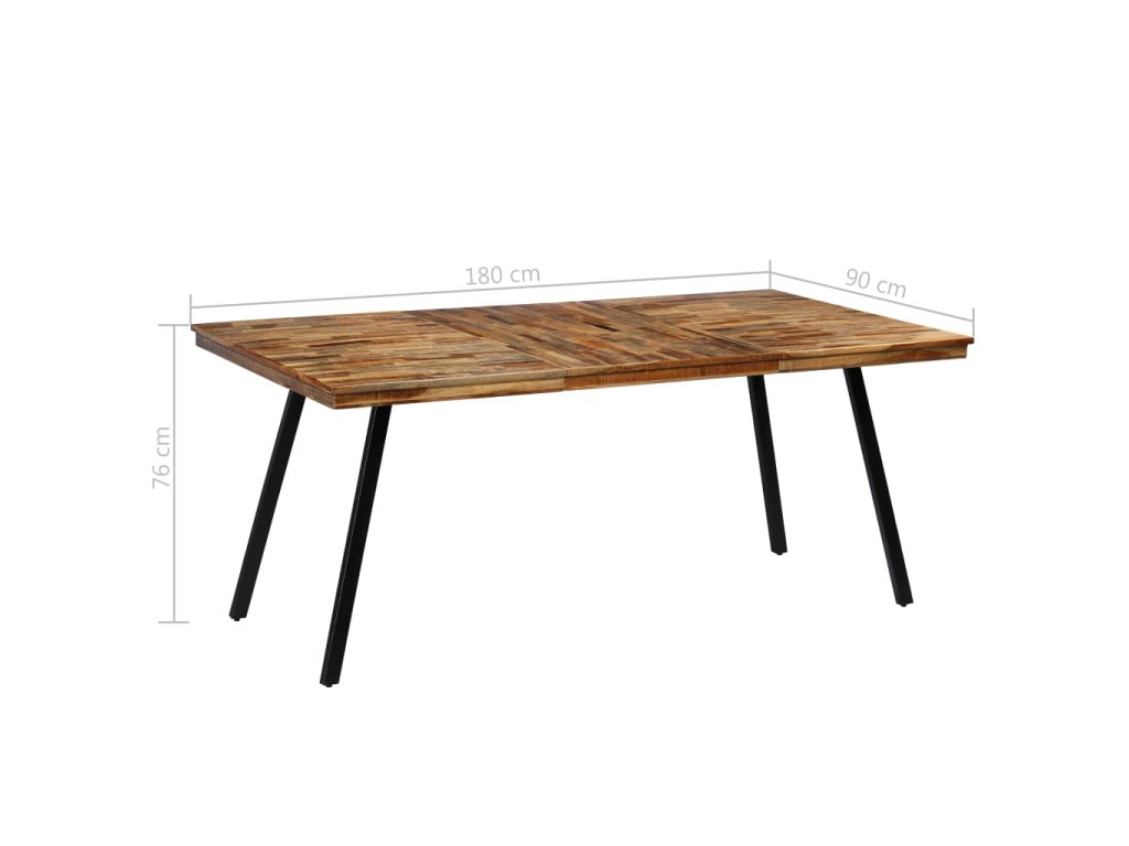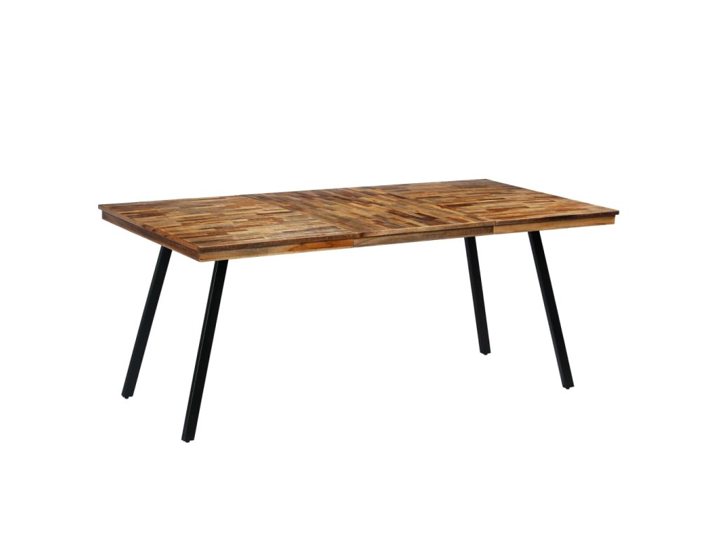Stolní deska je vyrobena z recyklovaného starého teaku, který je velmi pevný a odolný a propůjčuje produktu jeho přírodní vzhled a půvab. Každá fáze výrobního procesu je prováděna s největší pečlivostí, ať se jedná o leštění či lakování. Překrásná kresba dřeva činí každý kus nábytku zcela jedinečným a lehce odlišným od ostatních. Silné ocelové nohy přispívají nejen ke stabilitě stolu, ale zdůrazňují také jeho industriální styl. Montáž je snadná.