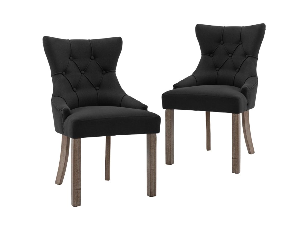 Design s krásnými knoflíky na opěradle těchto jídelních židlí je velmi atraktivní. Kuchyňské židle jsou čalouněné sametem, takže jsou měkké a příjemně se na nich sedí. Jejich silně polstrované sedáky a zaoblená opěradla vám zajistí optimální pohodlí. Nohy z kaučukovníkového dřeva zase přispívají k lepší stabilitě a zaručují židlím výtečnou odolnost.