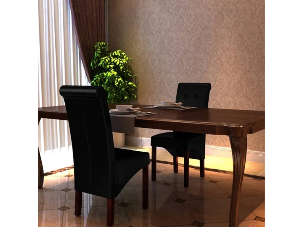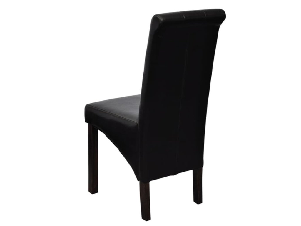 Tato sada 2 pohodlných jídelní židle má ergonomicky tvarovaná sedadla a opěradla. Židle lze snadno udržovat. Sedadla a opěradla těchto jídelních židlí jsou čalouněna syntetickou kůží. Nohy jsou vyrobeny z lakovaného tmavě hnědého masivního dřeva a hrany jsou zaoblené pro vyšší bezpečnost.
