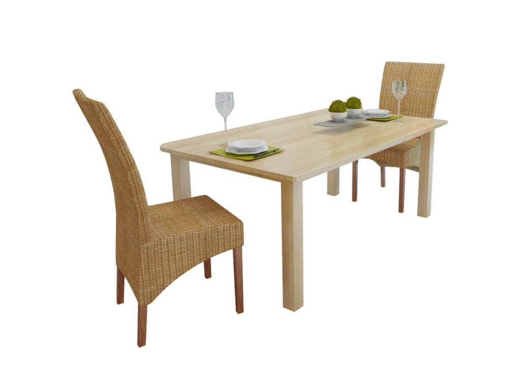 Upozornění: Židle jsou ručně pletené z pravého ratanu, proto se jejich odstín může kus od kusu lehce lišit. Stůl není součástí dodávky.