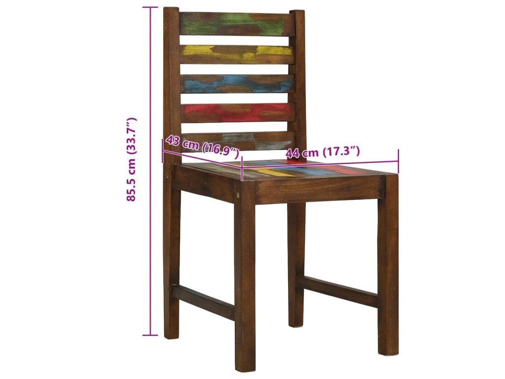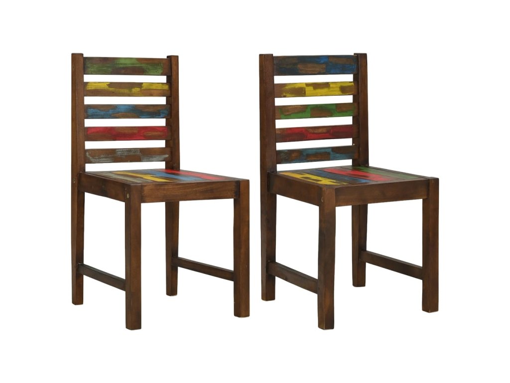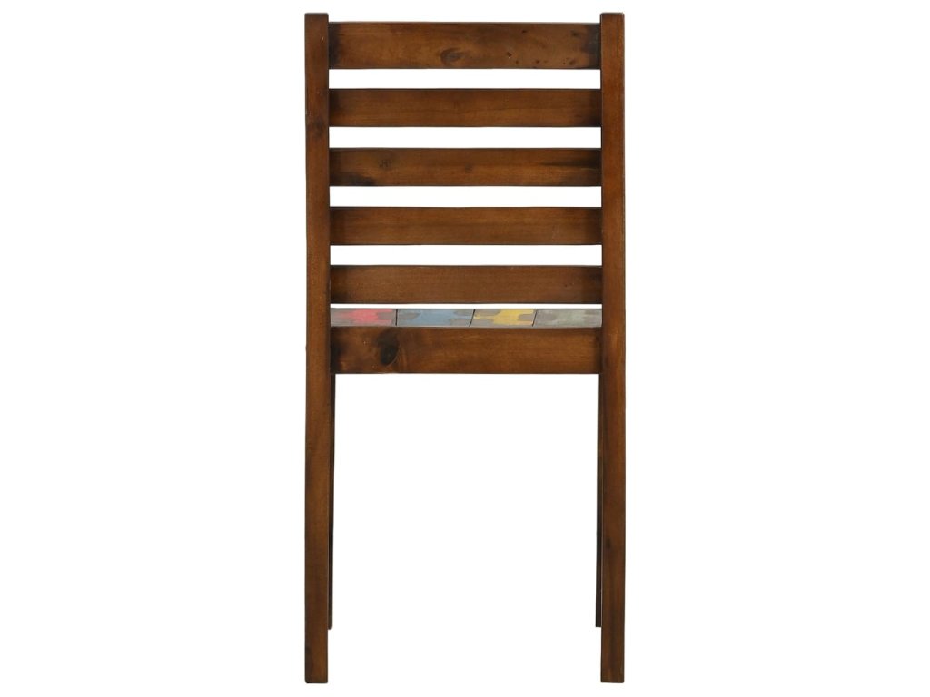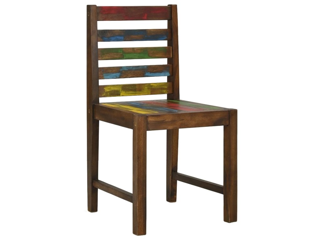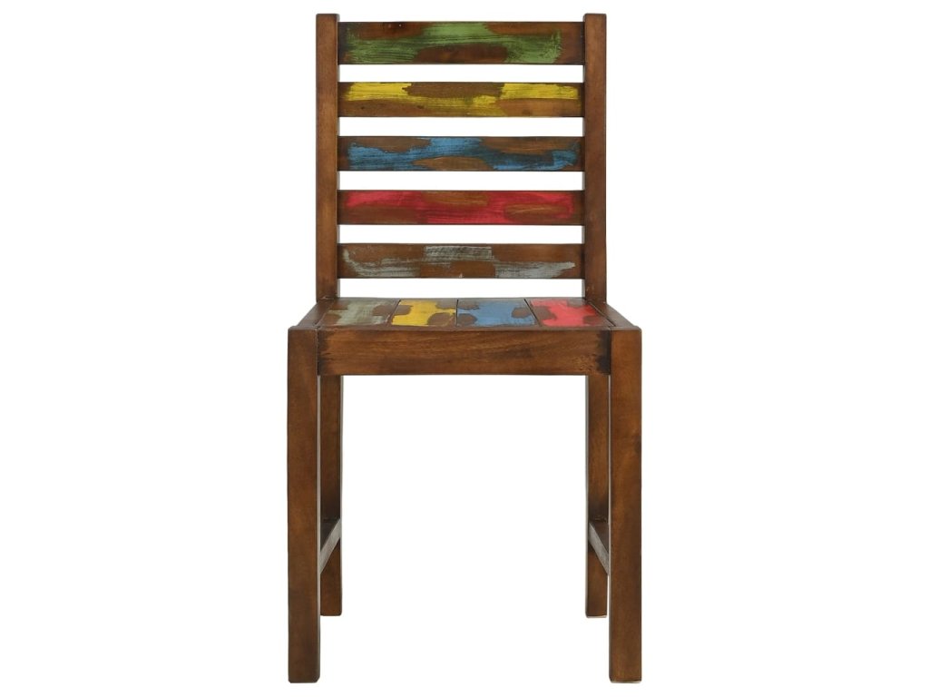 Židle jsou ručně vyrobené z masivního recyklovaného dřeva, a to ze směsi různých typů dřevin, mezi něž patří teak, mangovník, borovice, buk a další. Použité dřevo pochází ze starých továren, kůlen a lodí a představuje fantastický materiál pro výrobu nábytku, který je šetrný k životnímu prostředí. Jelikož je každý kus vyrobený ručně, barevně se liší a narazíte na mnoho odstínů modré, zelené, červené a žluté. To znamená, že každá židle je naprosto jedinečná!