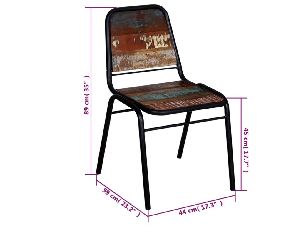 Tyto židle ve vintage stylu jsou vyrobené z masivního recyklovaného dřeva, což znamená, že každý kus nábytku je jedinečný a lehce se odlišuje od ostatních. Nábytek vyrobený z použitého dřeva má vlastnosti různých druhů dřeva, jako je teak, mangovník a akácie. Recyklované dřevo je masivní, bytelné, odolné a krásné. Známky opotřebení a odhalená struktura dřeva dodávají každému kusu jedinečnost a lehkou odlišnost od ostatních kusů.