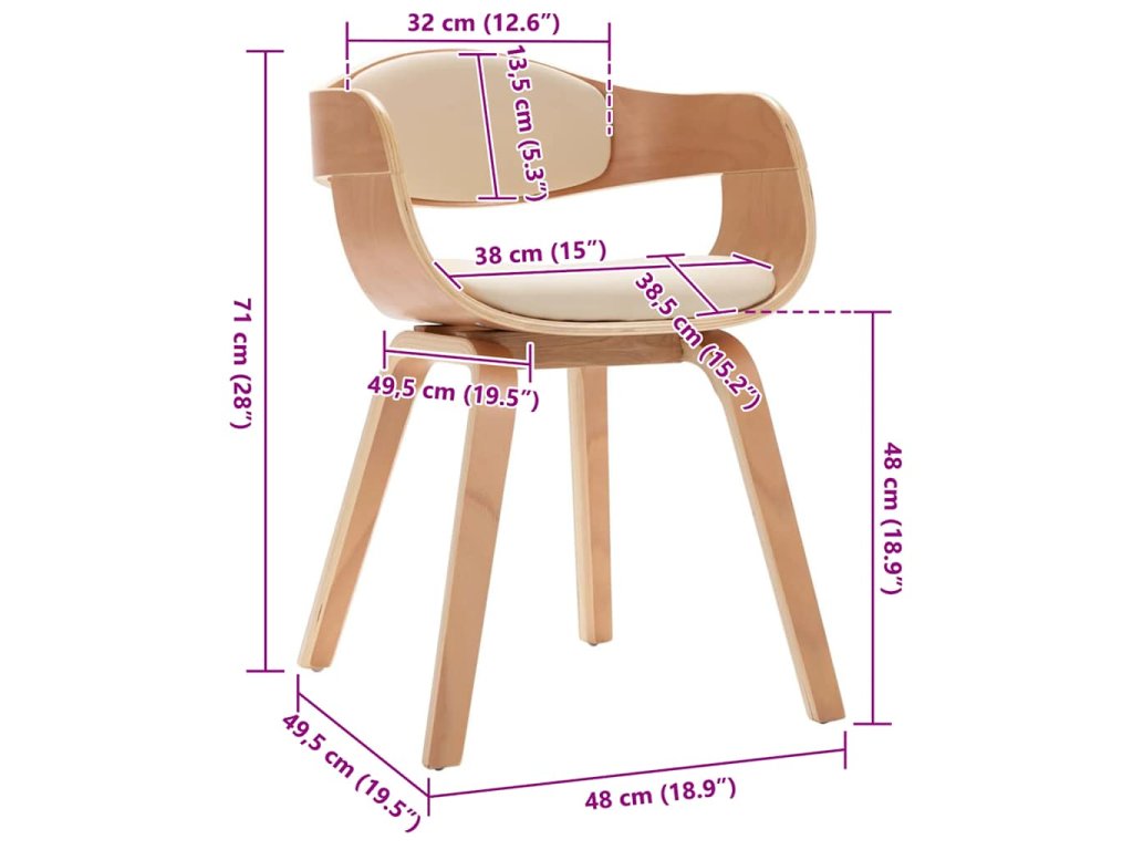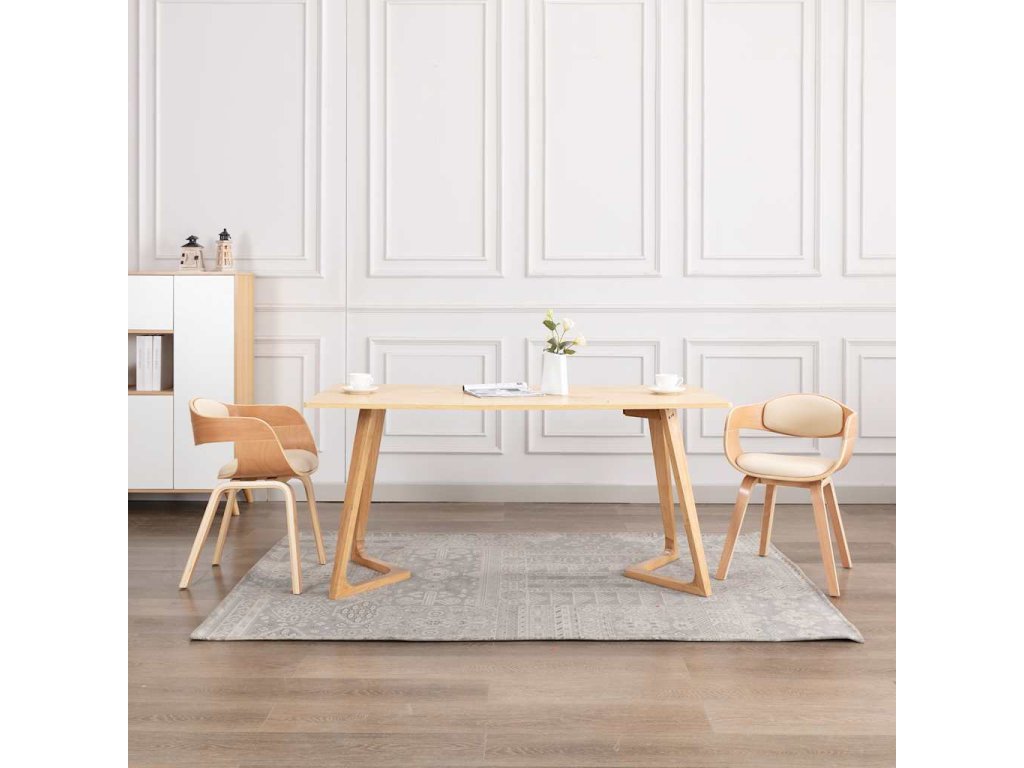 Jídelní židle je potažená umělou kůží a dobře polstrovaná, aby se vám na ní co nejlépe sedělo. Robustní rám z ohýbaného dřeva zdůrazňuje její jedinečnou krásu a styl. Vzhledem k ergonomickému tvaru židle se na ní můžete pohodlně uvelebit i na celé hodiny. Jedná se o perfektní volbu ke stolování, povídání, čtení, sledování televize nebo jen tak k odpočinku.