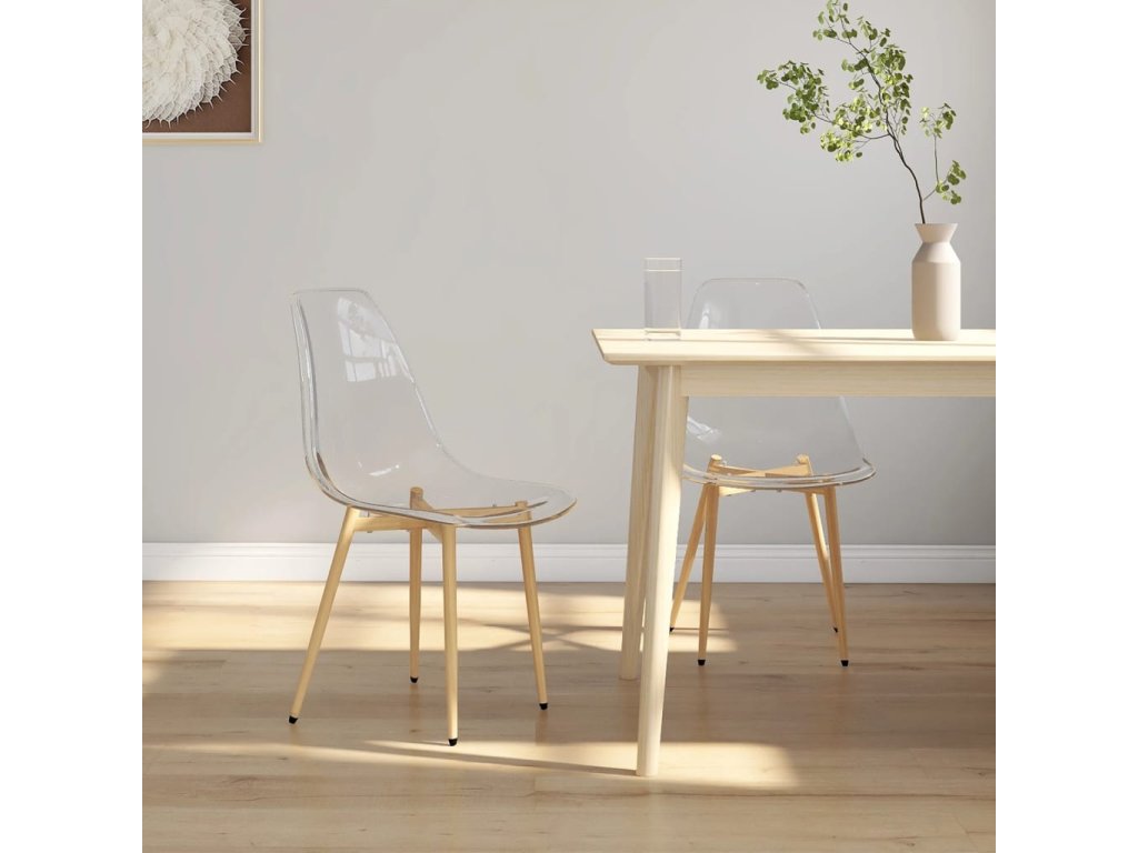 Jídelní židle má průhledný sedák s ladnými liniemi, což jí dodává speciální vzhled. Židle jsou vyrobené z PET, takže se snadno čistí. Kovové nohy jim navíc zajišťují mimořádnou odolnost. Kuchyňské židle mají ergonomicky zaoblené opěradlo, abyste si mohli při sezení užívat maximální pohodlí. Krytky na nohy chrání vaši podlahu před poškrábáním a zároveň přispívají k lepší stabilitě.