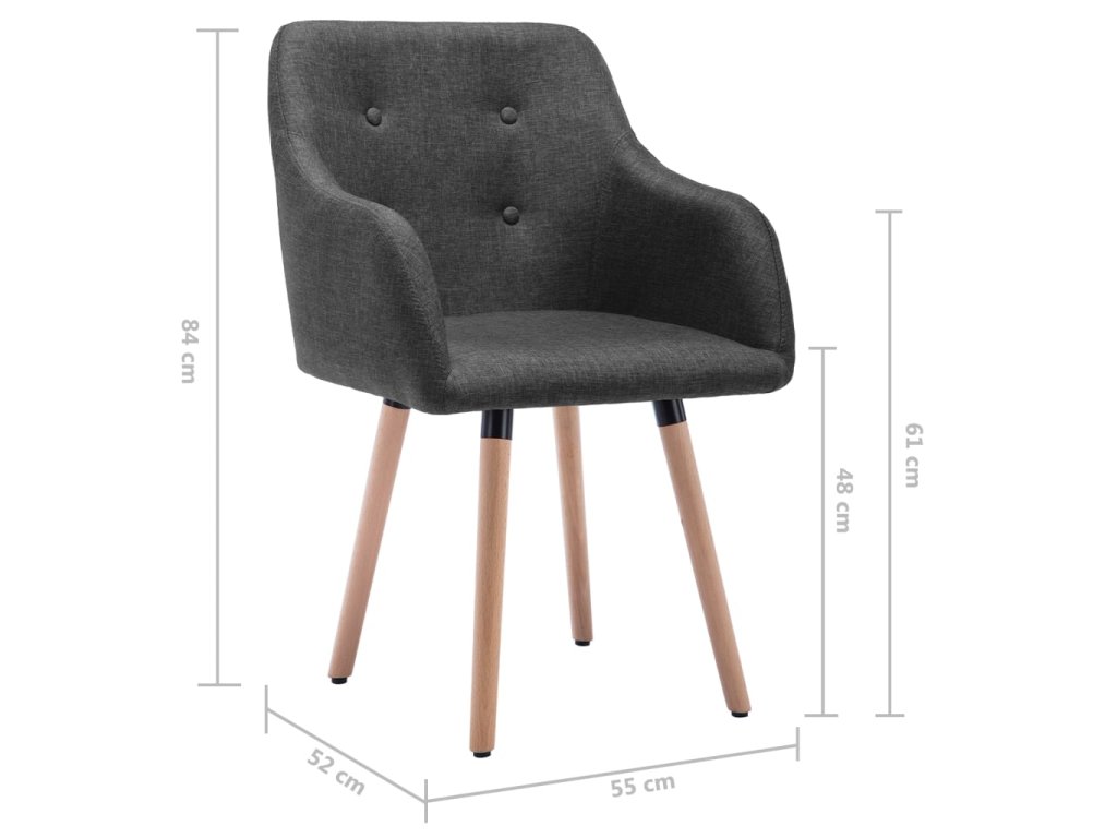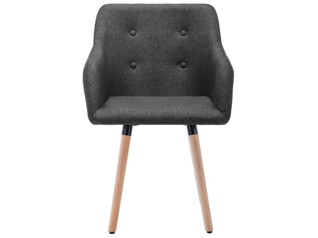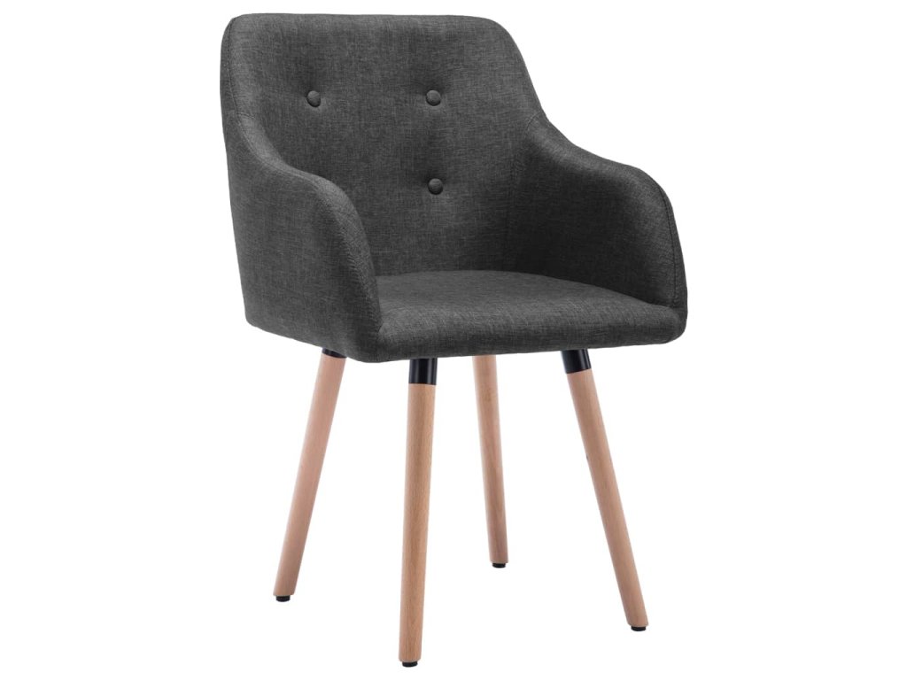 Křesla jsou čalouněná na dotek měkkou látkou, což vám zajistí optimální komfort. Celou konstrukci podebírá kovový rám a nohy z bukového dřeva, které židlím zároveň dodávají na stabilitě a zajišťují jejich dlouhou životnost. Každá židle má 4 všité knoflíčky, což umocňuje jejich báječný vzhled.