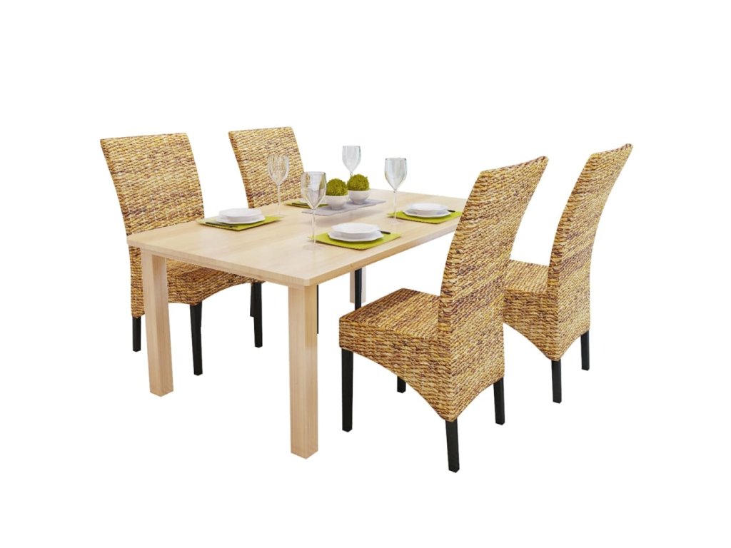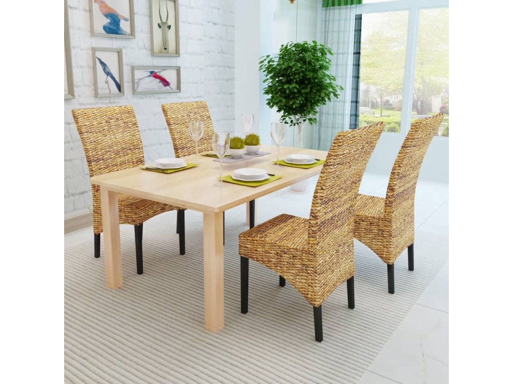 Rámy z tvrdého dřeva a přírodní abakové listy (banánové listy) dodávají židli nejen bytelnou strukturu, ale také estetický vzhled. Na sedadlech z abakového listí se navíc velmi pohodlně sedí. Pokud hledáte něco, co vhodně doplní zařízení vaší kuchyně nebo jídelny, tyto vyplétané židle budou skvělou volbou.