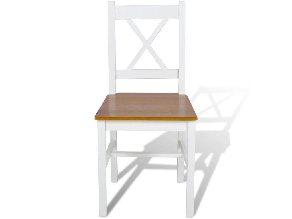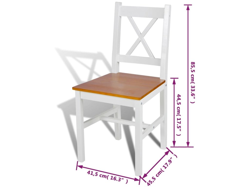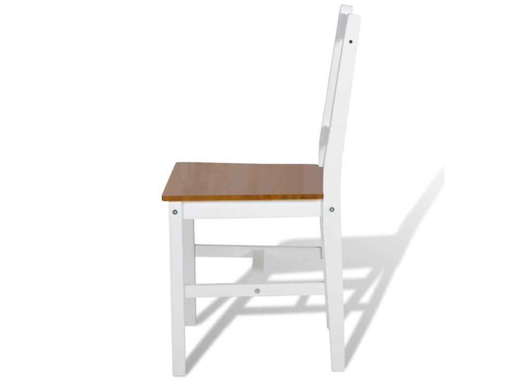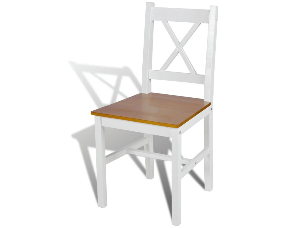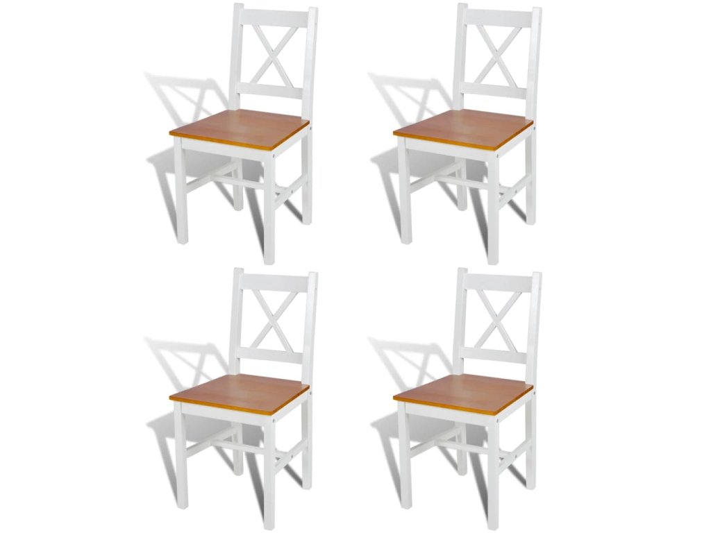Tento set jídelních židlí s jednoduchým, ale elegantním designem se skládá z 4 kusů a bude skvělým přírůstkem do vaší jídelny nebo kuchyně. Židle jsou vyrobeny z masivního borového dřeva, což jim dodává stabilitu a trvanlivost. Jídelní židle se díky hladké povrchové úpravě snadno čistí. Jsou ergonomicky tvarované pro větší pohodlí při sezení. Balení obsahuje 4 jídelní židle.