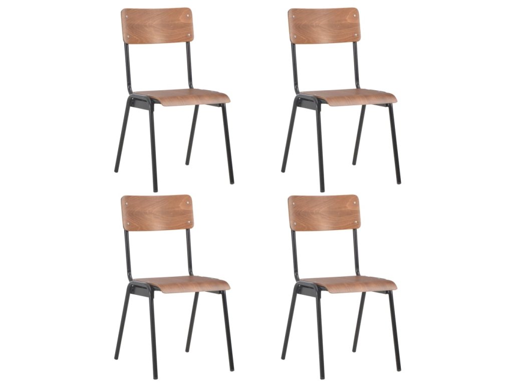 Jídelní židle jsou vyrobeny z masivní překližky, což je činí velmi robustní, odolné a navíc je snadno očistíte vlhkým hadříkem. Nohy jsou zhotovené z práškově lakované oceli a dodají židlím extra stabilitu. Židle jsou stohovatelné, takže ušetříte místo, když je právě nepoužíváte.