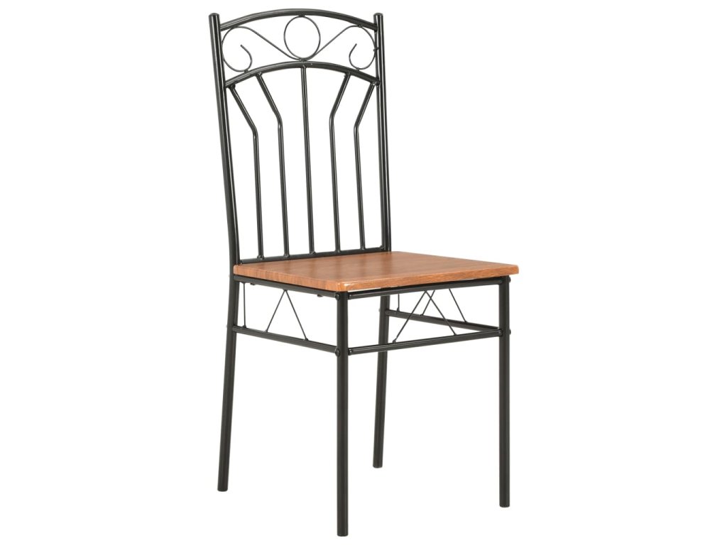 Industriálně vyhlížející židle jsou vyrobené z 15 mm silné desky MDF a vysoce kvalitní oceli, což jim zajišťuje mimořádnou stabilitu a odolnost. Hladká povrchová lazura také usnadňuje čištění nábytku. Ergonomický tvar židlí vám při sezení poskytne maximální pohodlí.