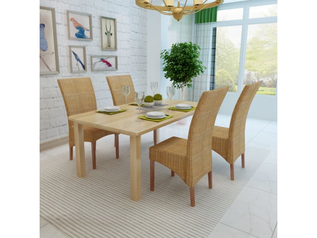 Tato originální sada jídelních židlí z pravého ratanu s tropickým vzhledem bude skvělým doplňkem do vašeho interiéru. Díky rámu z tvrdého dřeva a použití pravého ratanu mají tyto židle nejen robustní strukturu, ale jsou také příjemné po estetické stránce.
