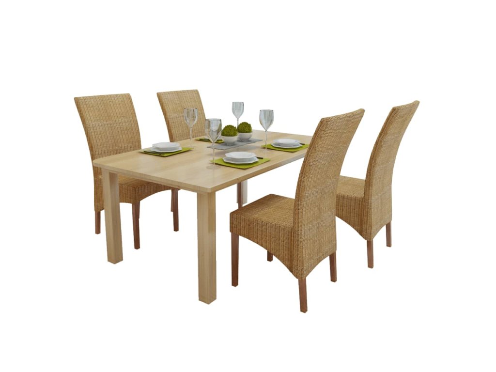 Upozornění: Židle jsou ručně pletené z pravého ratanu, proto se jejich odstín může kus od kusu lehce lišit. Stůl není součástí dodávky.