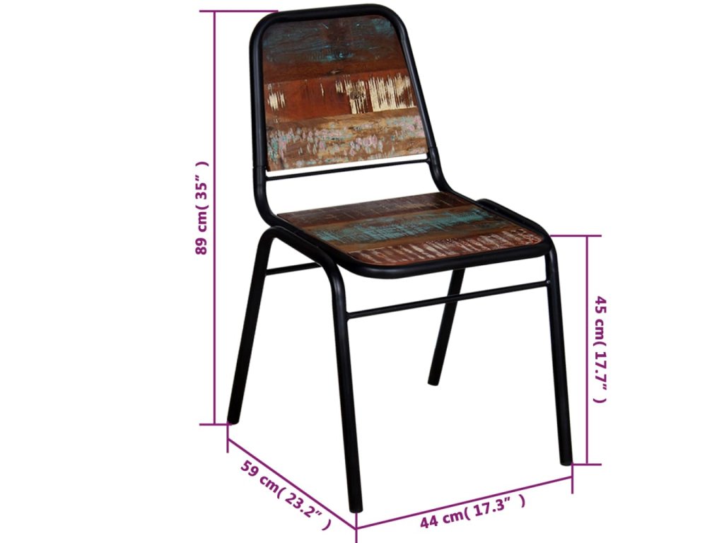 Tyto židle ve vintage stylu jsou vyrobené z masivního recyklovaného dřeva, což znamená, že každý kus nábytku je jedinečný a lehce se odlišuje od ostatních. Nábytek vyrobený z použitého dřeva má vlastnosti různých druhů dřeva, jako je teak, mangovník a akácie. Recyklované dřevo je masivní, bytelné, odolné a krásné. Známky opotřebení a odhalená struktura dřeva dodávají každému kusu jedinečnost a lehkou odlišnost od ostatních kusů.