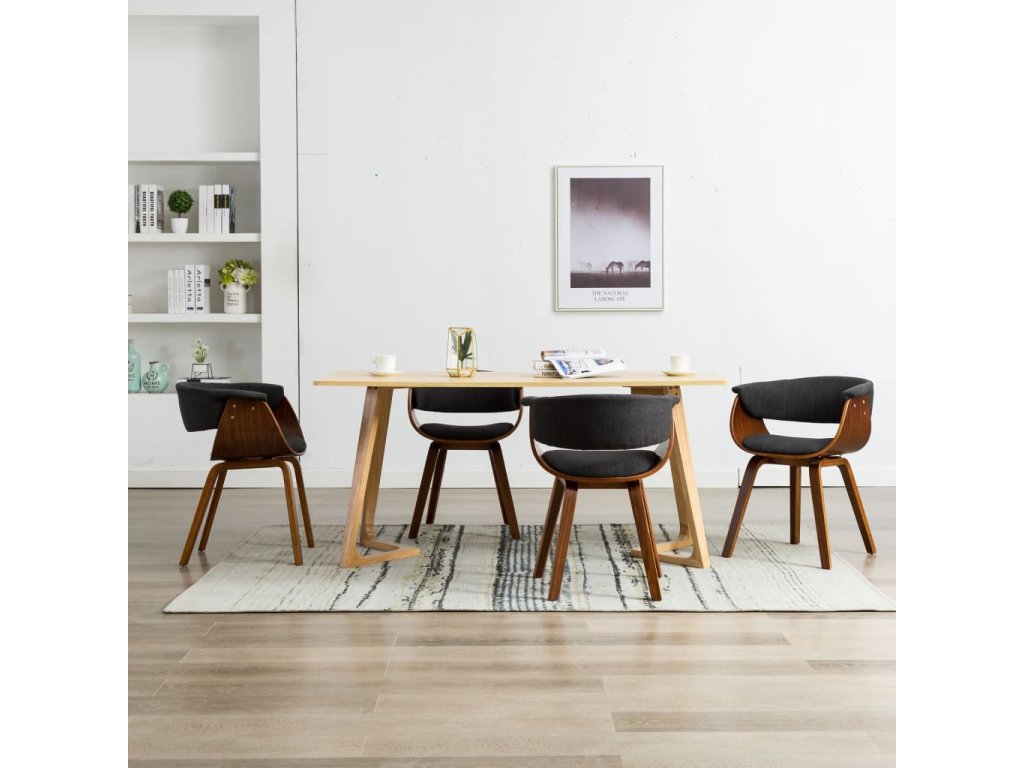 Sada židlí je čalouněná na dotek měkkou látkou, která zajišťuje prvotřídní komfort. Odolný rám z ohýbaného dřeva jim dodává unikátní půvab a styl. Čtyři dřevěné nohy posilují stabilitu židlí a prodlužují jejich životnost. Mají ergonomický design, a tak vám nic nebrání příjemně se na nich uvelebit na celé hodiny.