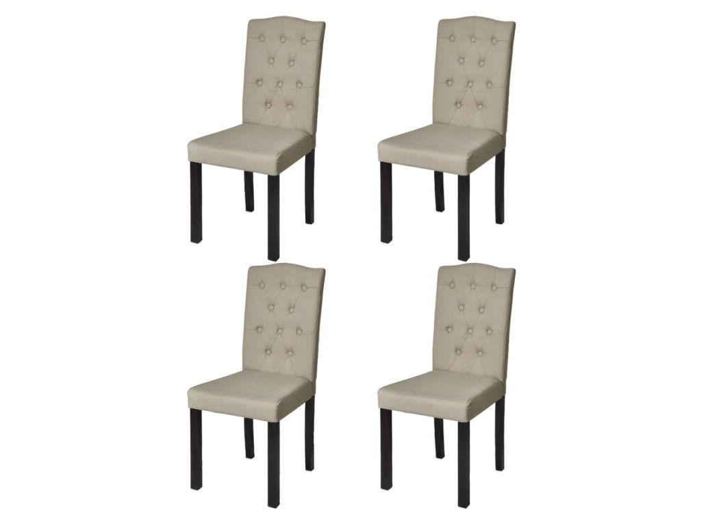 Tato sada 4 vkusných židlí v chesterfield provedení se vyznačuje klasickým designem a decentní elegancí. Komfortní textilní čalounění s plátěným vzhledem nabízí příjemné posezení a hodí se perfektně do velkého množství stylů zařízení interiérů.