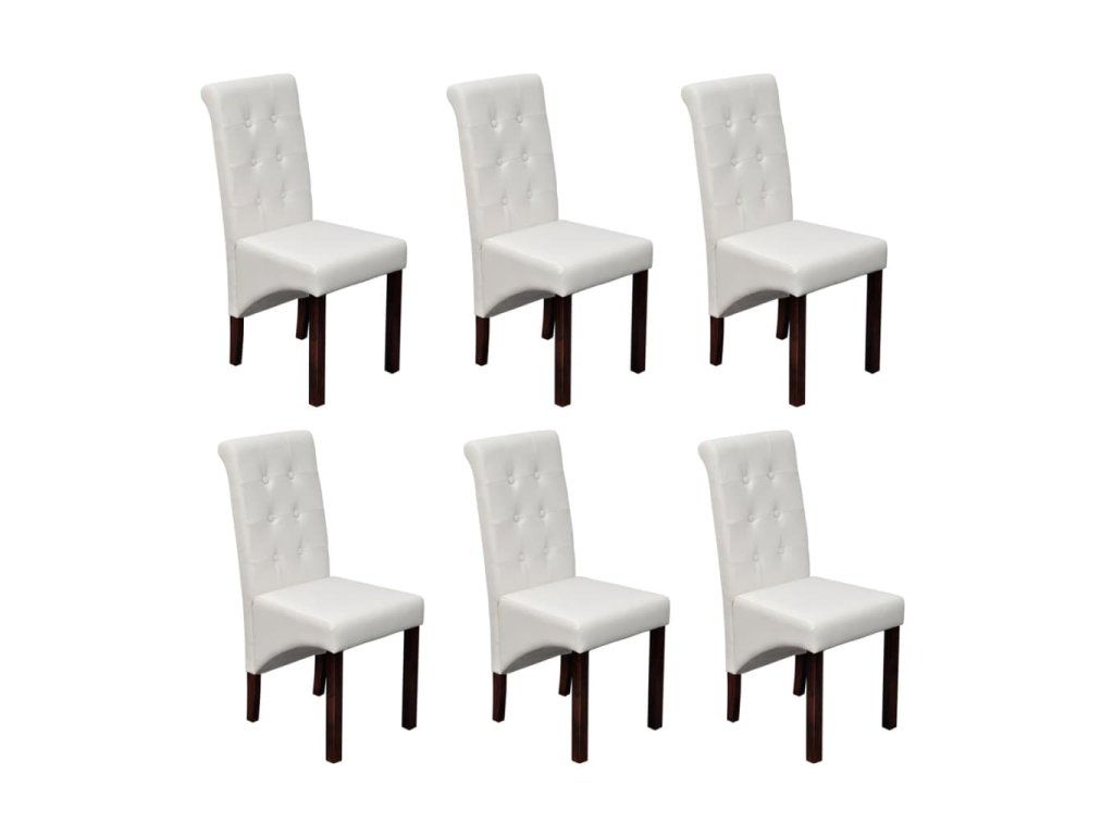 Tento set 6 pohodlných a širokých jídelních židlí má rustikální design s ergonomicky tvarovanými sedadly a opěradly. Nohy jsou vyrobené z masivního dřeva s tmavě hnědou lazurou. Jejich rohy jsou pro větší bezpečnost zaoblené. Údržba a čištění jsou velmi snadné. Sedadla a opěradla těchto jídelních židlí jsou polstrovaná odolnou syntetickou kůží.