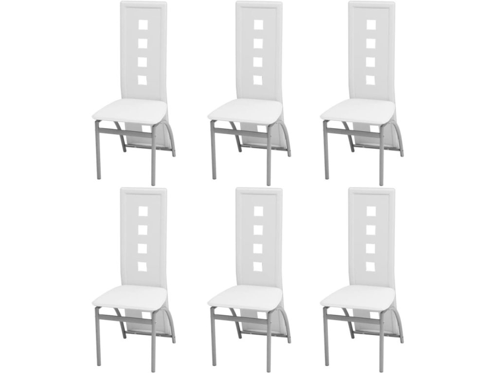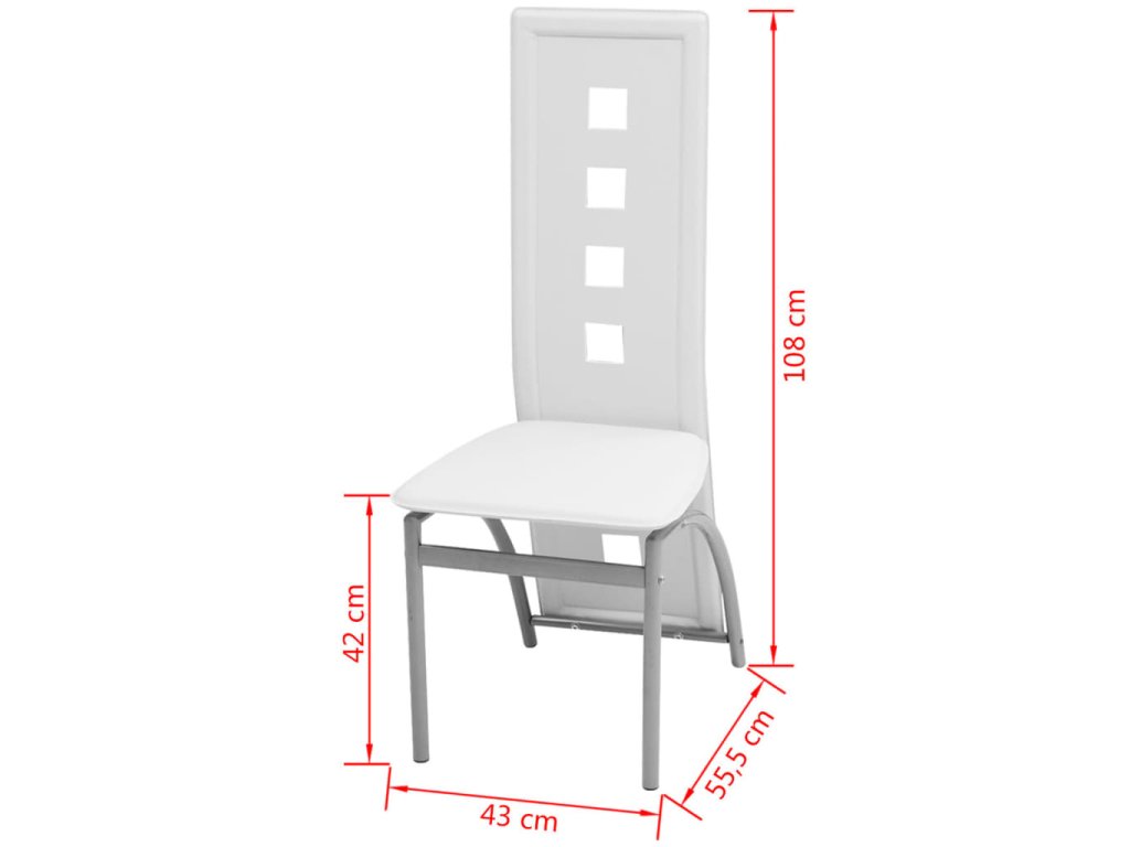 Díky ergonomickému designu jsou židle s vysokým opěradlem velmi pohodlné a jejich masivní ocelové rámy přispívají k jejich vysoké stabilitě a odolnosti. Sedadla jsou vyrobena z odolné syntetické usně, kterou lze snadno vyčistit. Montáž je velmi snadná.