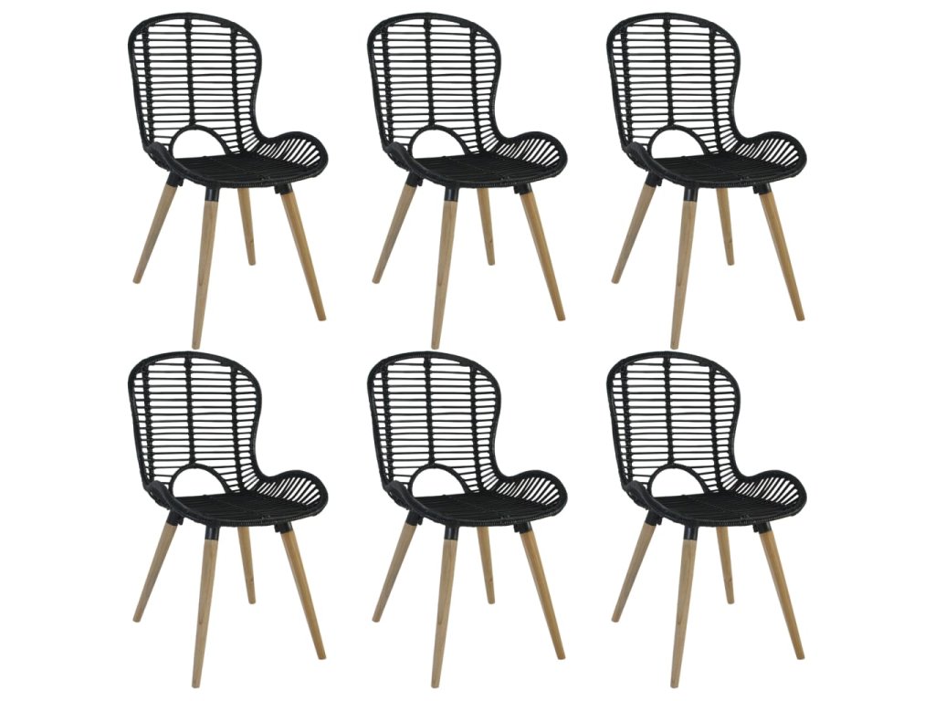 Sedáky a opěradla židlí jsou z přírodního ratanu, který je voděodolný a snadno se čistí. Dřevěné nohy zajišťují stabilitu a odolnost této sady nábytku, a také zdůrazňují její vintage styl. Tyto židle krásně zapadnou do každého prostředí a jejich sestavení je snadné. Balení obsahuje 6 jídelních židlí.