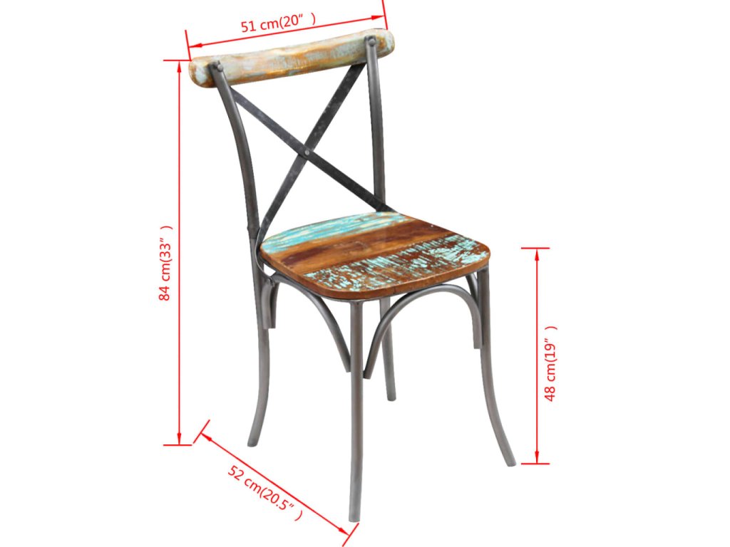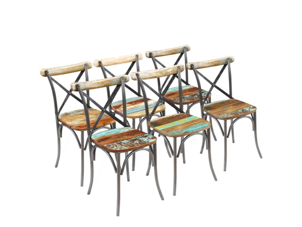 Tato starožitně vypadající šestidílná sada jídelních židlí z recyklovaného dřeva bude jedinečným doplňkem do vaší jídelny. Díky ocelovým rámům jsou židle stabilní a robustní.