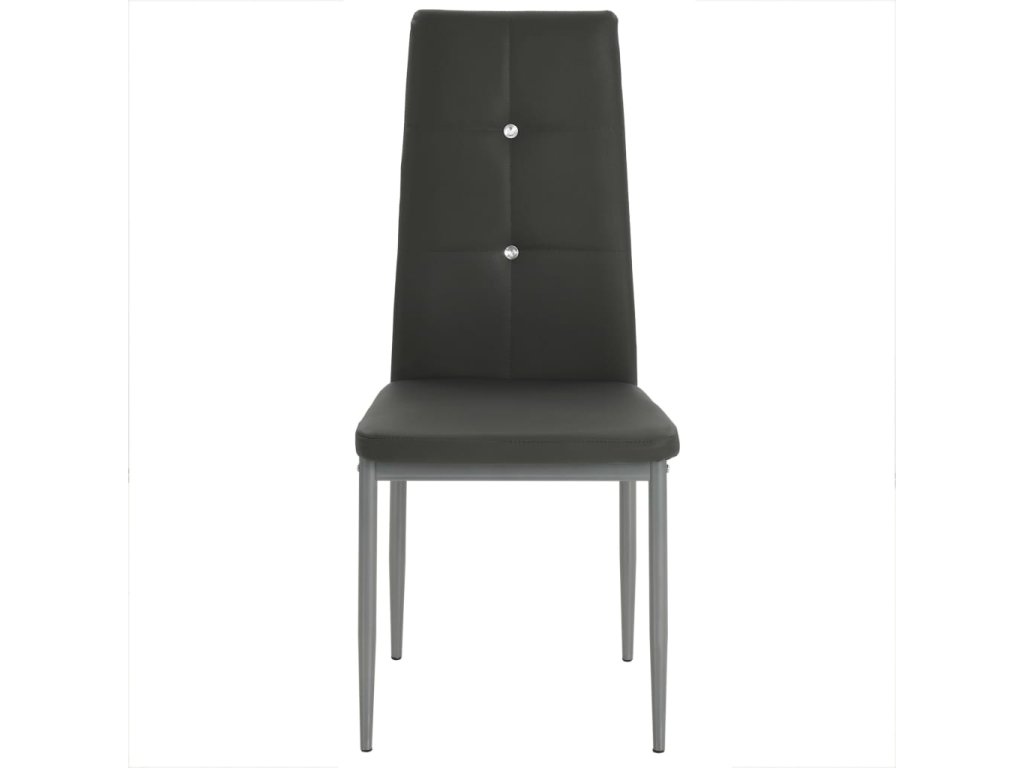 Židle disponuje dřevěným rámem s ocelovými nohami a polstrovaným sedákem s čalouněním z umělé kůže. Ergonomicky tvarované opěradlo je zdobené dvojicí krystalů, jež židli propůjčují vytříbený vzhled. Montáž židlí je snadná.