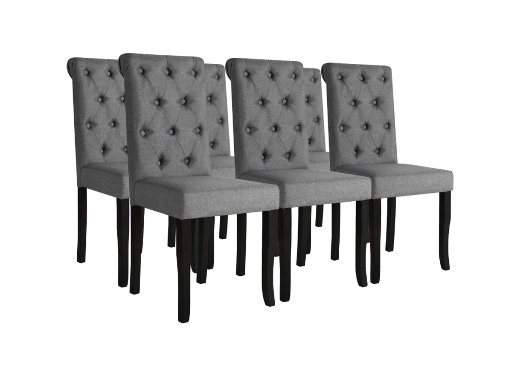 Díky jemnému textilnímu čalounění a pěnové výplni jsou tyto židle nesmírně pohodlné. Jejich opěradla se navíc pyšní ozdobnými knoflíčky, které jim dodávají klasický šmrnc.