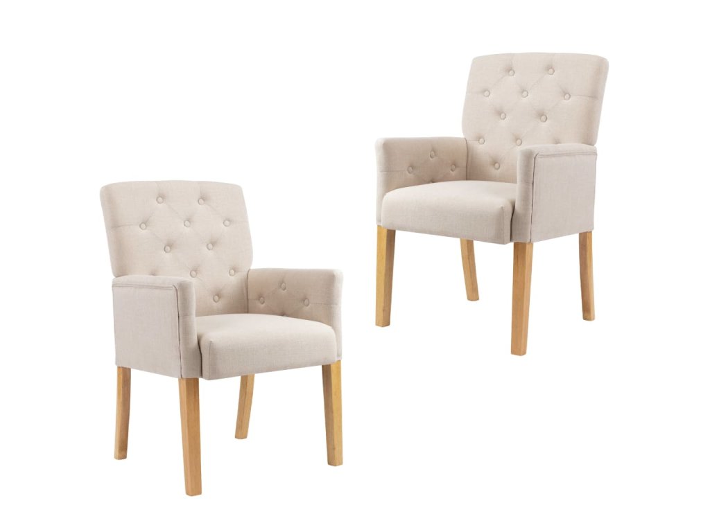 Křesla mají tlusté a na dotek měkké čalounění, které vám při jídle i při odpočinku poskytne maximální pohodlí. Mají také ergonomický design, a tak se vám v nich bude neuvěřitelně příjemně lebedit. Nohy z kaučukového dřeva zvyšují stabilitu židlí i jejich odolnost. Všívané knoflíčky navíc židlím propůjčují půvabné kouzlo.