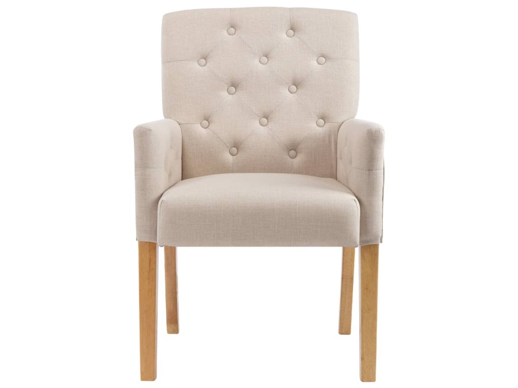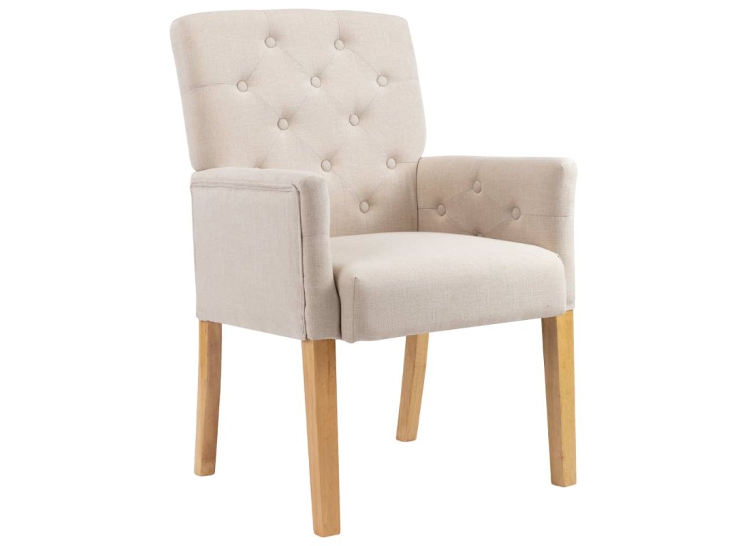 Křesla mají tlusté a na dotek měkké čalounění, které vám při jídle i při odpočinku poskytne maximální pohodlí. Mají také ergonomický design, a tak se vám v nich bude neuvěřitelně příjemně lebedit. Nohy z kaučukového dřeva zvyšují stabilitu židlí i jejich odolnost. Všívané knoflíčky navíc židlím propůjčují půvabné kouzlo.