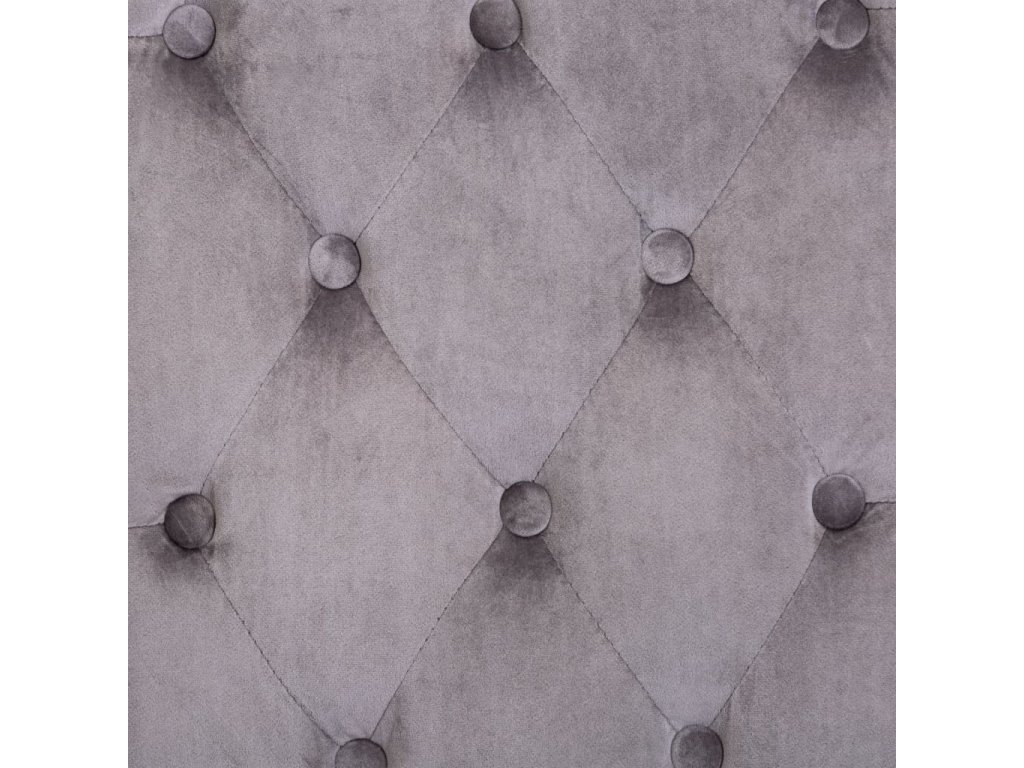 Tato jídelní židle je čalouněná na dotek měkkou sametovou látkou a poskytne vám pohodlné místo pro stolování, čtení nebo relaxaci. Dekorativní knoflík na opěradle a kovové nýty podél okrajů zvyšují klasickou krásu židle. Jídelní židle má masivní kaučukovníkové nohy, je tedy stabilní a robustní.