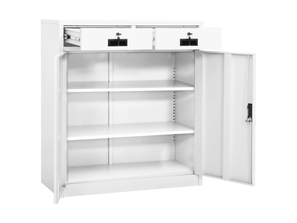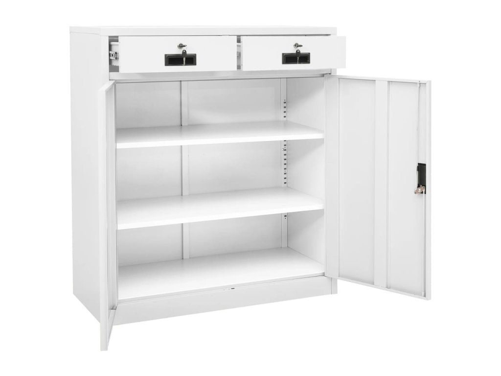 Tato kancelářská skříň je vyrobena z oceli, takže je odolná a snadno se čistí. Uvnitř najdete 2 nastavitelné police, takže můžete snadno a úhledně třídit soubory do různých kategorií a mít je v bezpečí. Zásuvky s 3dílnými pojezdy s kuličkovými ložisky zajišťují hladké otevírání a zavírání i při zvýšené zátěži. Se svým ikonickým designem se tato skříň bude hodit do každé kanceláře.