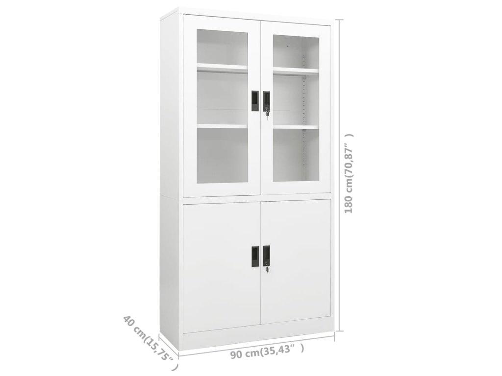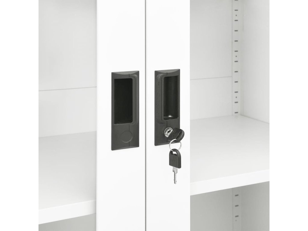Skříň má 3 nastavitelné police a 2 zámky, takže si v ní můžete svoje dokumenty přehledně uspořádat do různých kategorií a přitom se nemusíte bát o jejich bezpečí. Její ikonický design krásně zapadne do každé kanceláře. Přes originální dveře z tvrzeného skla navíc pohodlně uvidíte dovnitř, a budete tak moci vytáhnout přesně ten spis, který potřebujete.