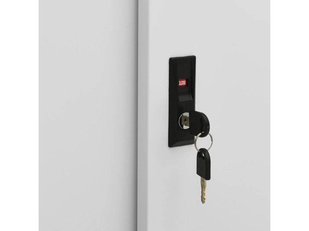 Úložná skříň je vyrobena z oceli, takže je mimořádně robustní a odolná. Posuvné dveře zajišťují hladké otevírání a zavírání. Skříň má navíc výškově nastavitelné police, je tedy vhodná pro ukládání souborů různých velikostí. Kartotéka je také vybavena zámkem, který chrání vaše osobní dokumenty před nevítanými hosty.