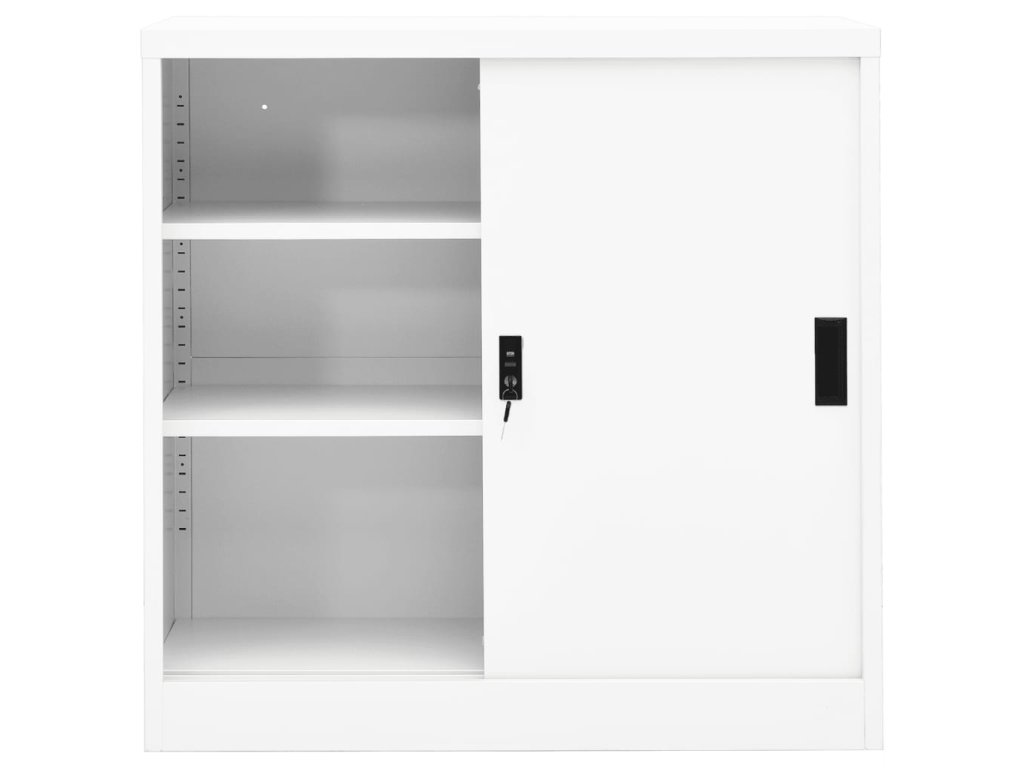 Úložná skříň je vyrobena z oceli, takže je mimořádně robustní a odolná. Posuvné dveře zajišťují hladké otevírání a zavírání. Skříň má navíc výškově nastavitelné police, je tedy vhodná pro ukládání souborů různých velikostí. Kartotéka je také vybavena zámkem, který chrání vaše osobní dokumenty před nevítanými hosty.