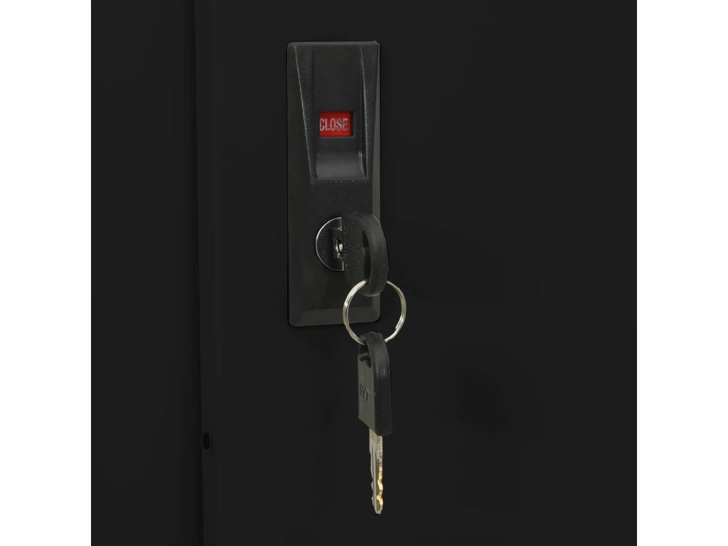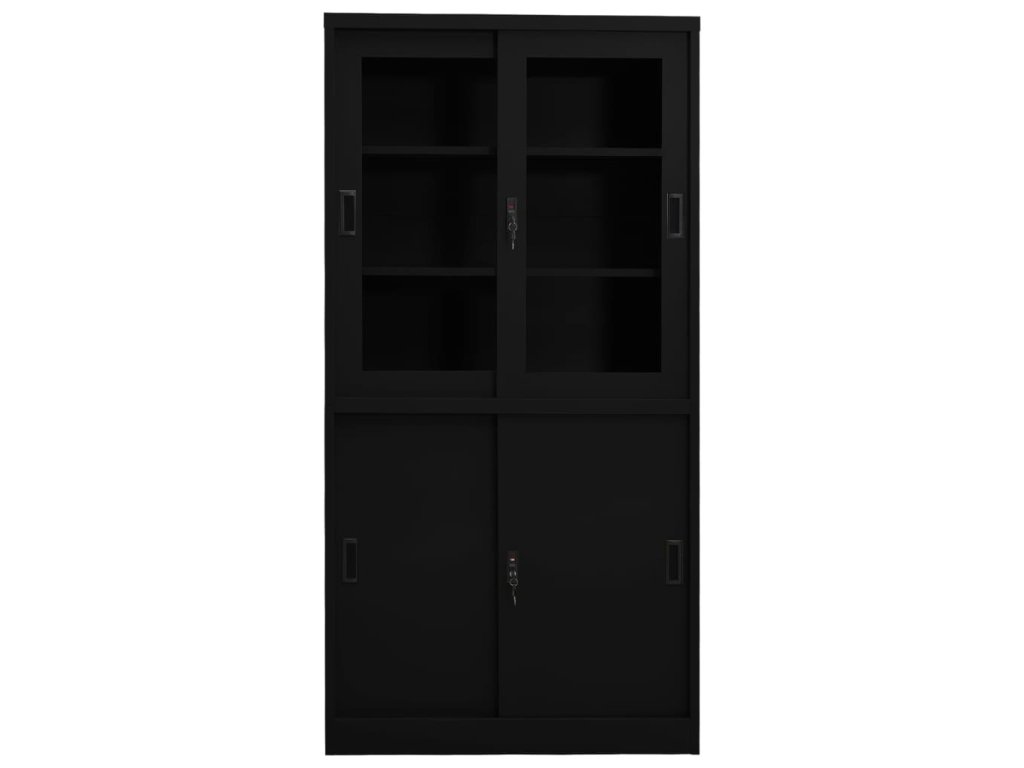 Úložná skříň je vyrobena z oceli a tvrzeného skla, takže je mimořádně robustní a odolná. Posuvné dveře zajišťují hladké otevírání a zavírání. Skříň má 3 výškově nastavitelné police, je tedy vhodná pro ukládání souborů různých velikostí. Kartotéka je také vybavena zámky, které chrání vaše osobní dokumenty před nevítanými hosty.
