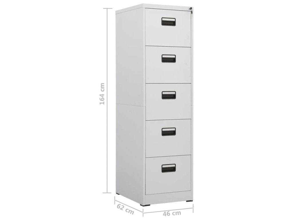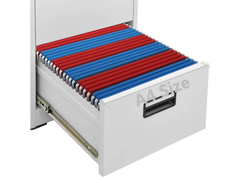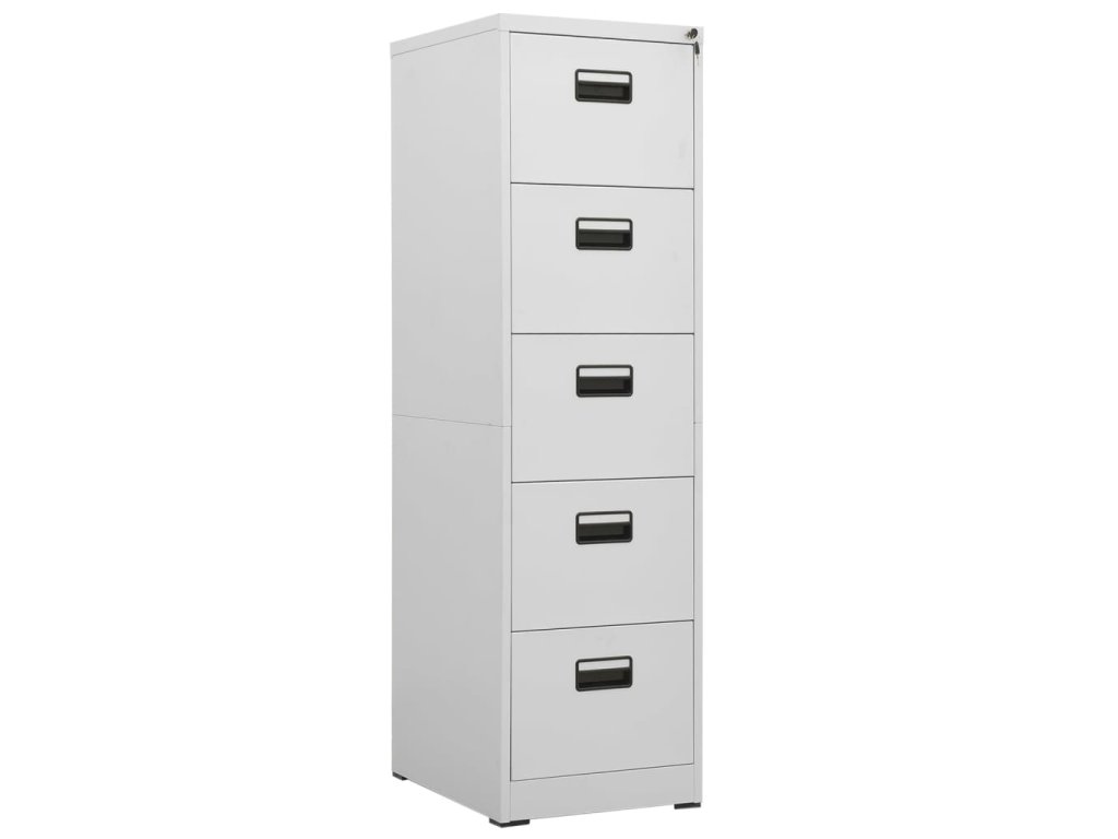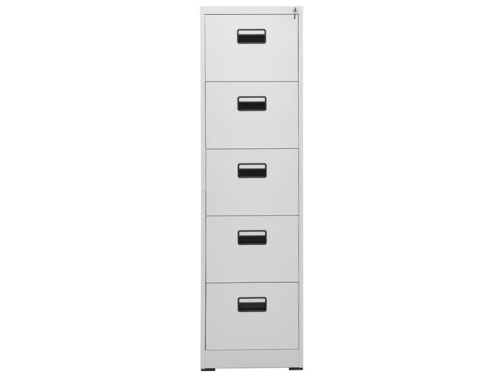 Tato kartotéka je vyrobena z oceli, je tedy odolná a snadno se čistí. Disponuje 5 zásuvkami a 1 zámkem, takže můžete přehledně třídit soubory do různých kategorií a mít je bezpečně uložené. Každá zásuvka je vybavena 1 odnímatelnou závěsnou tyčí, kterou lze libovolně kombinovat pro uložení souborů formátu legal a závěsných desek velikosti A4. Zásuvky s třídílnými pojezdy s kuličkovými ložisky zajišťují plynulé otevírání a zavírání, i při zvýšené zátěži se zásuvky dají zcela vysunout.