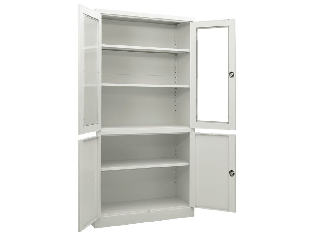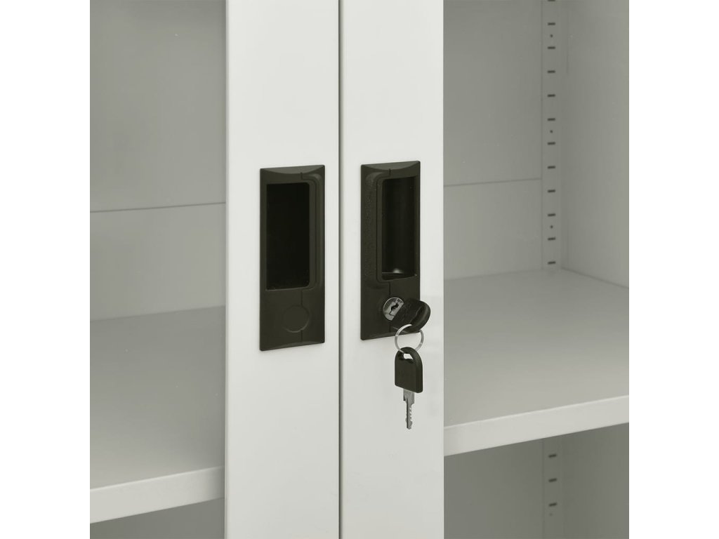 Skříň má 3 nastavitelné police a 2 zámky, takže si v ní můžete svoje dokumenty přehledně uspořádat do různých kategorií a přitom se nemusíte bát o jejich bezpečí. Její ikonický design krásně zapadne do každé kanceláře. Přes originální dveře z tvrzeného skla navíc pohodlně uvidíte dovnitř, a budete tak moci vytáhnout přesně ten spis, který potřebujete.