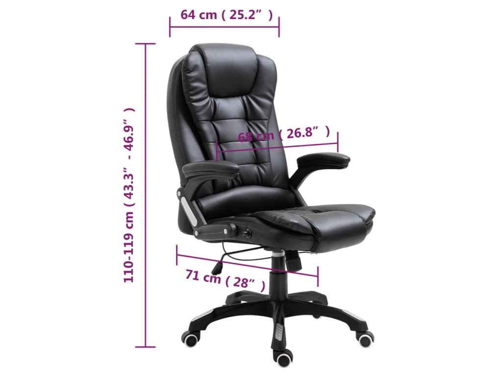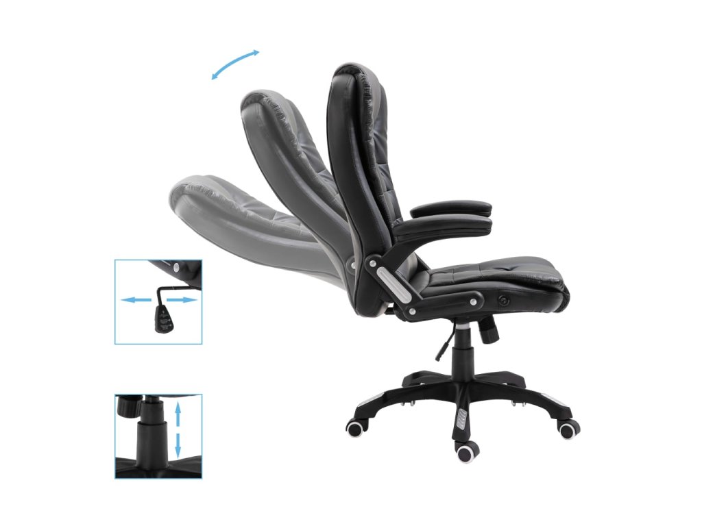 Design s vysokým opěradlem a ergonomicky polstrovaným opěradlem, područkami a sedákem vám umožní pohodlně pracovat i několik hodin. Má nastavitelný design, takže si židli můžete přizpůsobit výšce vašeho stolu, aby se vám pohodlněji sedělo a vaše páteř byla ve zdravé pozici. Design rovněž umožňuje otáčet židli o 360° stupňů. Židle je posazená na 5 nylonových kolečkách, a dá se tudíž bez námahy či hluku přesouvat z místa na místo.